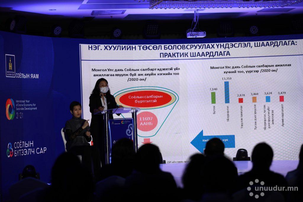 Судалгааны багийн ахлагч, хуульч, судлаач, Хууль зүйн ухааны магистр Д.Лхамжав “Соёлын бүтээлч үйлдвэрлэлийг дэмжих тухай хуулийн төслийн үзэл баримтлал, хуулийн төсөл”-ийг танилцуулсан байна.