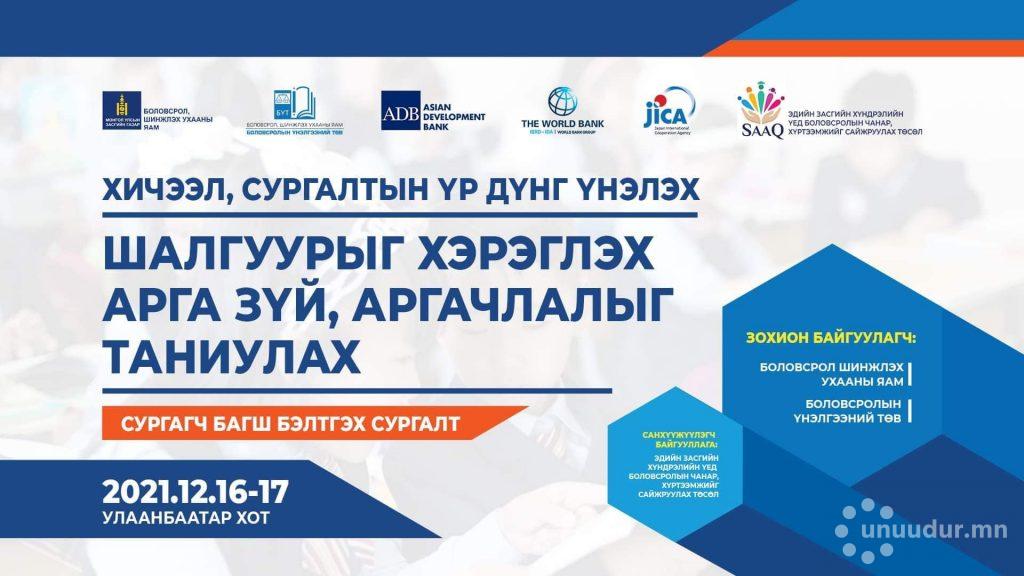 “Хичээл сургалтын үр дүнг үнэлэх шалгуурыг хэрэглэх арга зүй, аргачлалыг таниулах” сургагч багш бэлтгэх дараагийн шатны цахим сургалт энэ сарын 23-24, 27-28-ны өдрүүдэд үргэлжилэхээр болжээ.