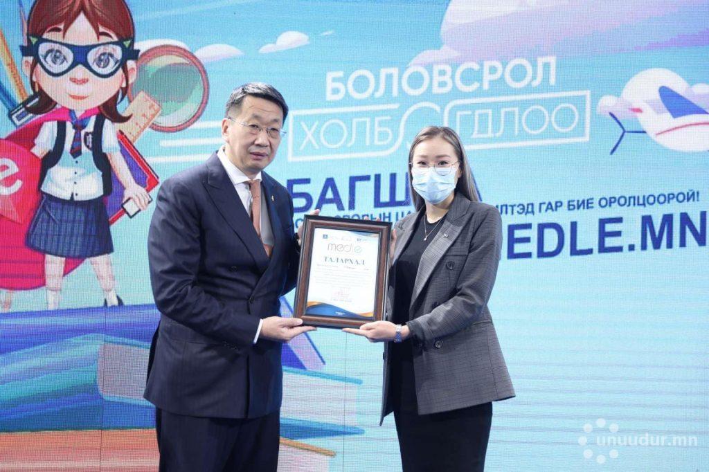 Ээлжит хичээлийн цахим контент боловсруулах уралдаант шалгаруулалтад амжилттай оролцож 483 хичээлийг контентын санд байршуулсан 43 багшийг БШУ-ы сайд Л.Энх-Амгалан хүлээн авч талархал илэрхийлэн, мөнгөн шагналаар урамшууллаа.