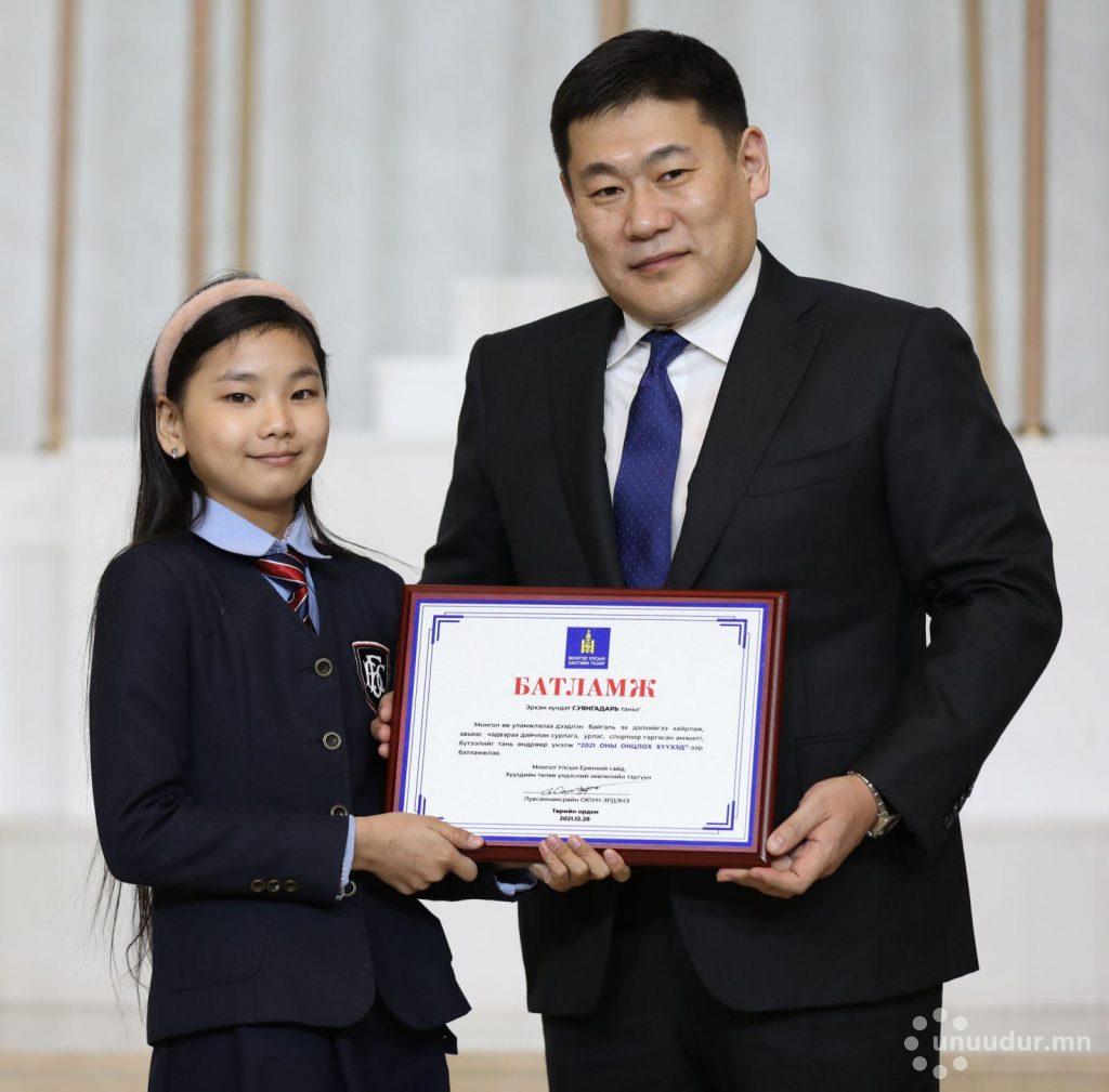 Монгол Улсын Ерөнхий сайд, Хүүхдийн төлөө үндэсний зөвлөлийн тэргүүн Л.Оюун-Эрдэнэ “Оны шилдэг хүүхэд” шагнал гардууллаа.