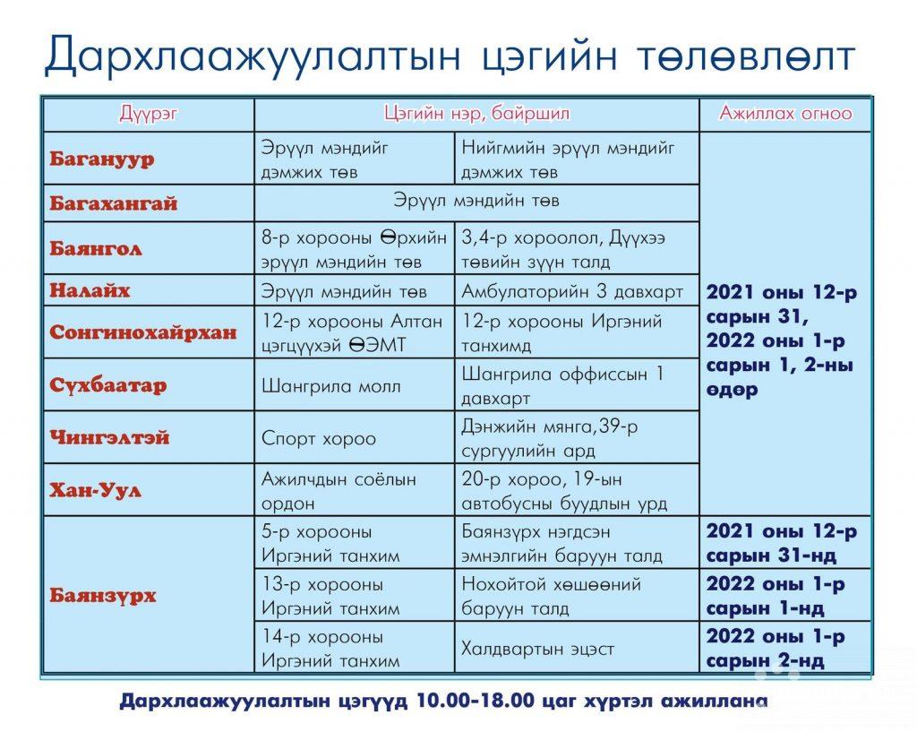 Дархлаажуулалтын цэгүүд 10:00-18:00 цаг хүртэл ажиллах юм байна.