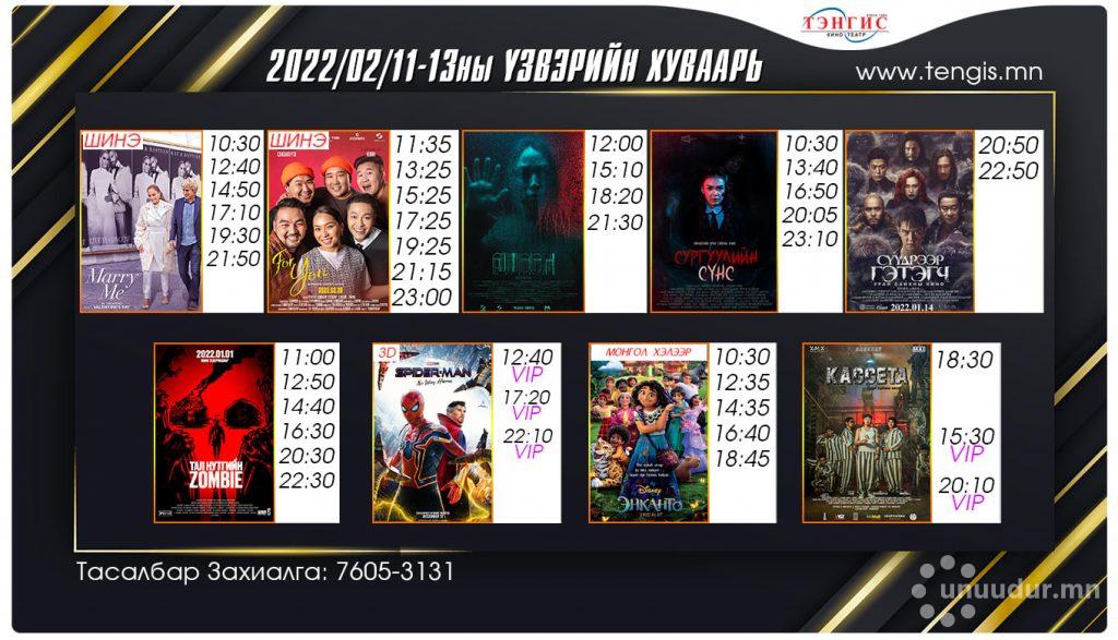 Тэнгис кино театрт энэ сарын 11-нд нээлтээ хийх кино уран бүтээлүүдийг онцолж байна. Дараах кинонууд Валентины баяр хүртэл тус кино театрт тавигдах юм байна.