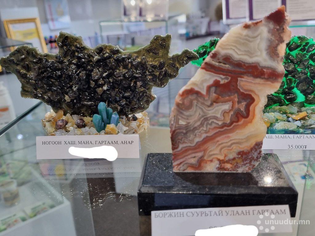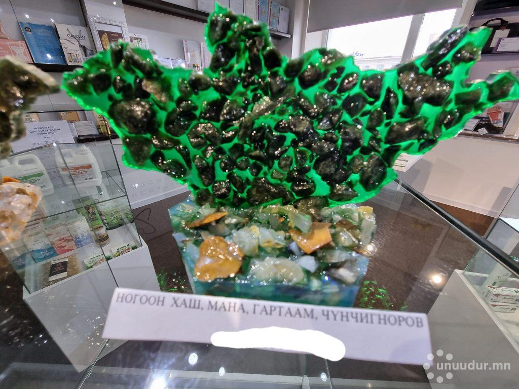 Шинжлэх ухааны академийн Геологийн хүрээлэнгийн судлаач Г.Алтансүх судалгааны хүрээнд олсон мана, гартаам, чүнчигноров, хаш зэрэг чулууны бутархайгаар газрын зураг, ээмэг, бөгжний шигтгээ хийжээ.