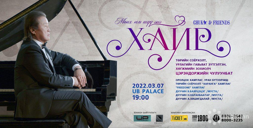 Төрийн соёрхолт, Урлагийн гавьяат зүтгэлтэн, хөгжмийн зохиолч, “Харанга” хамтлагийн аргил гитарчин Ц.Чулуунбат Олон улсын эмэгтэйчүүдийн эрхийг хамгаалах өдөрт зориулж “Chuka & Friends: Хайр” тоглолтоо гуравдугаар сарын 7-нд "UB palace"-ын концертын их танхимд хийх гэж байна.