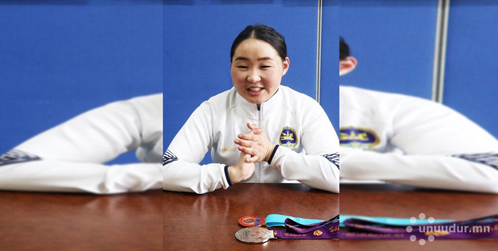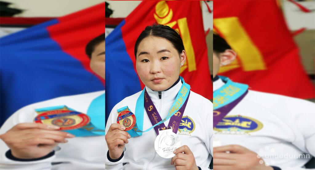 -Би самбо, жүдо аль алинаар нь барилддаг. Дэлхийн аваргын мөнгөн медалиас илүү самбо бөхийн УАШТ-ий түрүү сэтгэлд минь хоногшжээ. 2020 оны тэр тэмцээнд аваргын төлөө “Алдар” спорт хорооны Э.Бадамгаравтай барилдаж, цаг дуусахаас 40 секундийн өмнө тонгороход нь дагуулж мушгиад хожсон юм. Өнгөрсөн жил Узбекистаны Ташкент хотод самбо бөхийн насанд хүрэгчдийн ДАШТ болохын өмнөх сорил барилдаанд “Хилчин” спорт хорооны Г.Ганцэцэгийг ялж, оролцох эрх авсан. Дэлхийн аваргад заавал өрсөлдөнө гэж өөртөө амласан болохоор хүчтэй өрсөлдөгчөө ялж, зорилгоо биелүүлсэн. Өмнө нь медалийн төлөө барилдаж атгаад л алддаг байв. Ямар алдаа гаргаснаа дараа нь дүгнэхэд сэтгэл зүйн хатгүй, цаг дуусахаас өмнө ядарвал өрсөлдөгчдөө буугаад өгчихдөг зан минь амжилт гаргахад хойш татдаг байсныг ухаарсан. Ялагдчихаад сэтгэлээр унахад багш “Чи дэвжээнээс хэзээ нэгэн цагт медаль хүртэнэ. Дараагийн тэмцээн чамайг хүлээж байна. Алдаагаа давтахгүйг хичээх хэрэгтэй” гэж урам өгдөг байлаа.