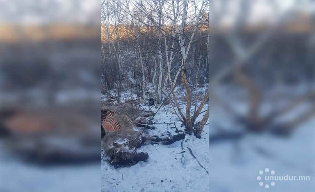Эхний зурагт хоёр морио ойд модноос уяж орхиод турааж алсан үйлдлийг харуулж байна. Цагдаагийн байгууллагаас эл үйл явлын талаар тодруулахад "Хэнтий аймгийн Баян-Адрага сумд 2020 оны хавар болсон явдал. Нутгийн иргэд хулгайгаар самарт явахдаа морио модноос уяад "мартаж" орхисон болов уу. Улмаар хоёр морь өлдөж үхжээ. Эздийг нь одоогоор олоогүй байна" хэмээх тайлбарыг өгсөн.