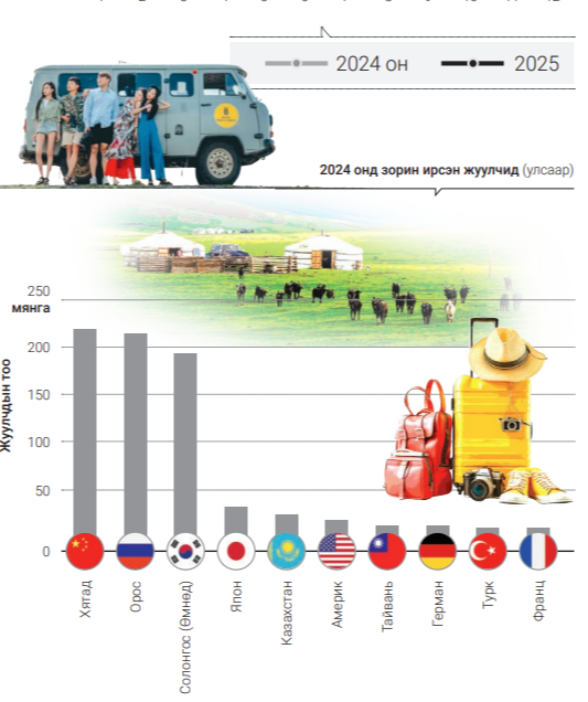 2024 онд гэхэд л БНСУ-аас 200 орчим мянган жуулчин манайд ирсний дийлэнх нь 35-аас доош насны залуучууд байжээ. Гэтэл өөрсдийнх нь нийслэл Сөүл сүүлийн жилүүдэд “Аялахад хамгийн таатай хот”-ын жагсаалтыг тогтмол тэргүүлж, “Netflix”-ийн “KPop Demon Hunters” цувралаас хойш дэлхий нийтийн анхаарлыг улам их татан, “Trazee travel” байгууллагаас явуулсан саяхны судалгаагаар 25-40 насны аялагчдад хамгийн их таалагдсан хотоор шалгарсан байх юм. Энэ нь солонгос соёл дэлхий даяар хэр хэмжээнд түгэн дэлгэрсний баталгаа болохоос гадна Сөүл хотын уламжлалт болон орчин үеийн хэв маягийг хослуулсан шийдэл, дижитал систем, ухаалаг дэд бүтэц зэрэг нь жуулчид, олон нийтэд ихэд таалагддагтай холбоотой аж. Харин солонгос залуус Монголын тэсгим хүйтэн өвлийг үзэхээр, шуурга салхинд нь “шавхуурдуулахаар”, хад чулуу, намаг балчиг, энхэл донхолтой бартаат замыг “Фургон” машинаар сэгсчүүлэн туулахаар, уудам хөндий талаар морь унан давхихаар 3-4 өдрийн богино хугацааны аяллыг сонгон ирдэг учраас тэд манай аялал жуулчлалын салбарынхны тойглох учиртай зорилтот бүлэг мөнөөсөө мөн болжээ. Тэднийг ийн Монгол руу хошууран чиглэхэд хүргэсэн гол хүчин зүйл нь мэдээж к-поп, кино одод, алдарт юүтүбэр, инфлүүнсерүүдийн нөлөө гэнэ.