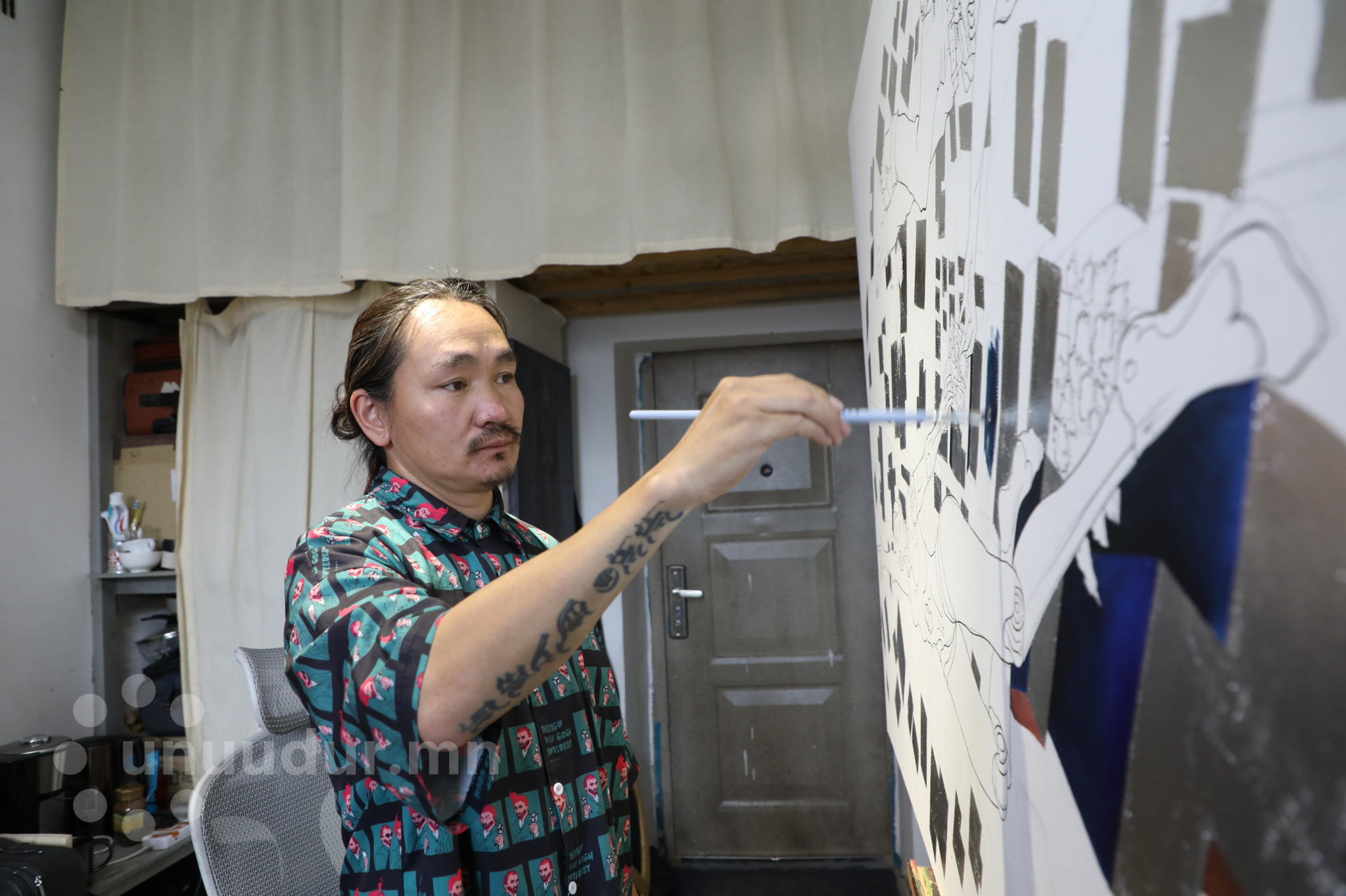 -“Арт хувьсгал”-ынхаа санааг их бодож хонодог юм. Автобусаар явбал контентынхоо текстийг бичнэ. Хоолойг нь уншина. Монтажаа хийж, цацчихаад л дугуйгаа унаад, урлан луугаа жийнэ дээ. Ингээд кофегоо сайхан чанаж аваад л хөгжмөө тавиад л өнөөх хар нүхнийхээ ертөнц рүү өөрөө шумбаад орно доо. Зургаа зурж байхдаа хорвоо ертөнцийн тухай бясалгана. Өнгөрсөн амьдралын алдаа, оноо бүхнээ бодоод л зурах чинь яг үнэндээ жаргал.