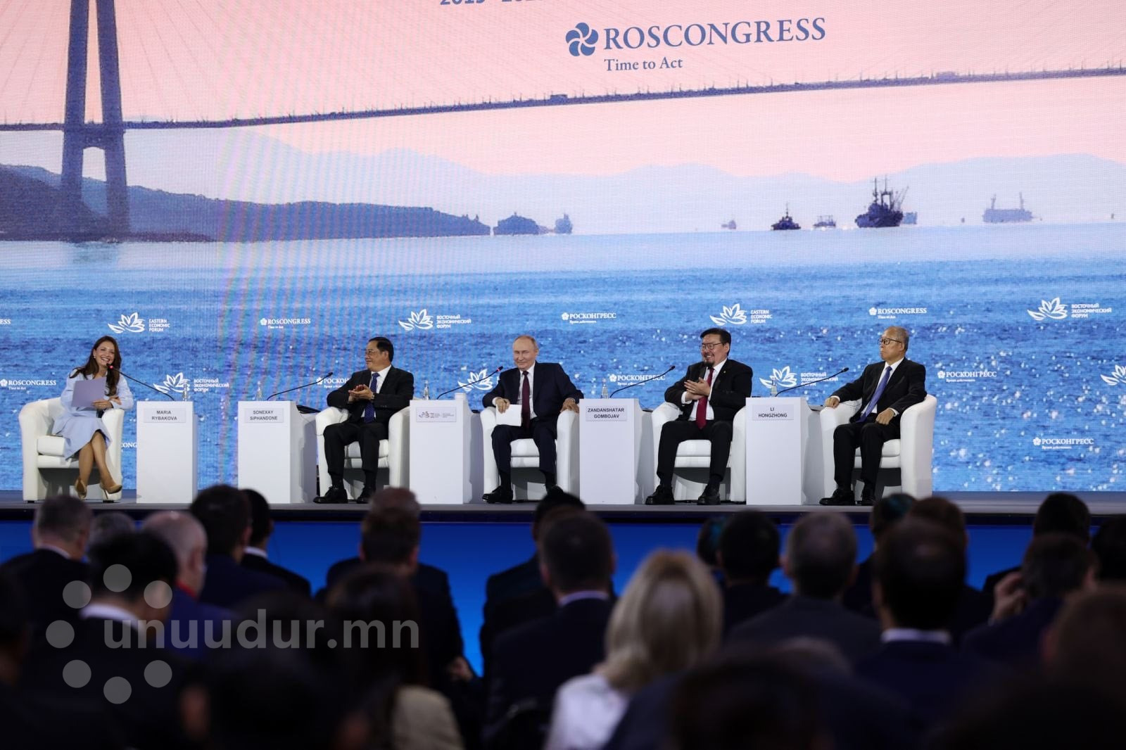 ОХУ-ын Владивосток хотноо 10 дахь жилдээ болсон Дорнын эдийн засгийн чуулга уулзалтыг өнөө жил “Алс Дорнод-Энх тайван, хөгжил цэцэглэлтийн төлөөх хам¬тын ажиллагаа” сэдвийн хүрээнд энэ сарын 3-6-нд зохион байгууллаа. Манай улс ОХУтай хөгжүүлж буй харилцаа, хамтын ажиллагаанд өндөр ач холбогдол өгч, энэхүү чуул¬га уулзалтад дээд, өндөр түвшинд оролцож ирсэн уламжлалтай бөгөөд 2016 оноос хойш Ерөнхийлөгчийн түвшинд дөрөв, Ерөнхий сайд, Гадаад харилцааны болон Сангийн сайдын түвшинд тус бүр нэг гээд нийт долоон удаа оролцжээ.