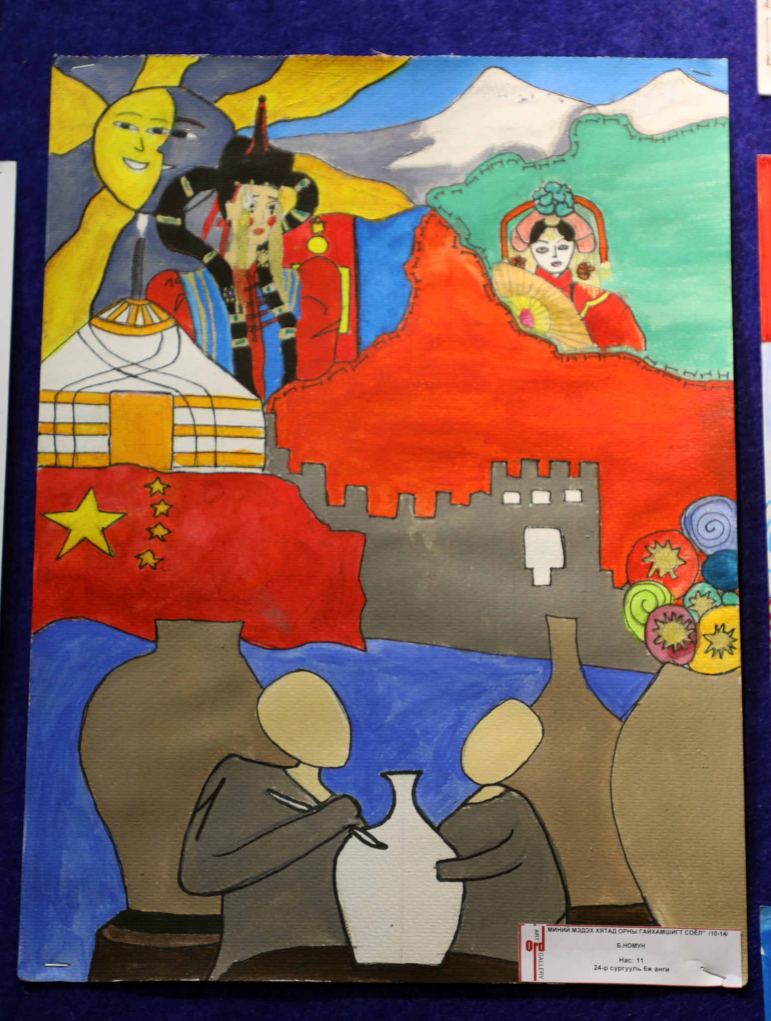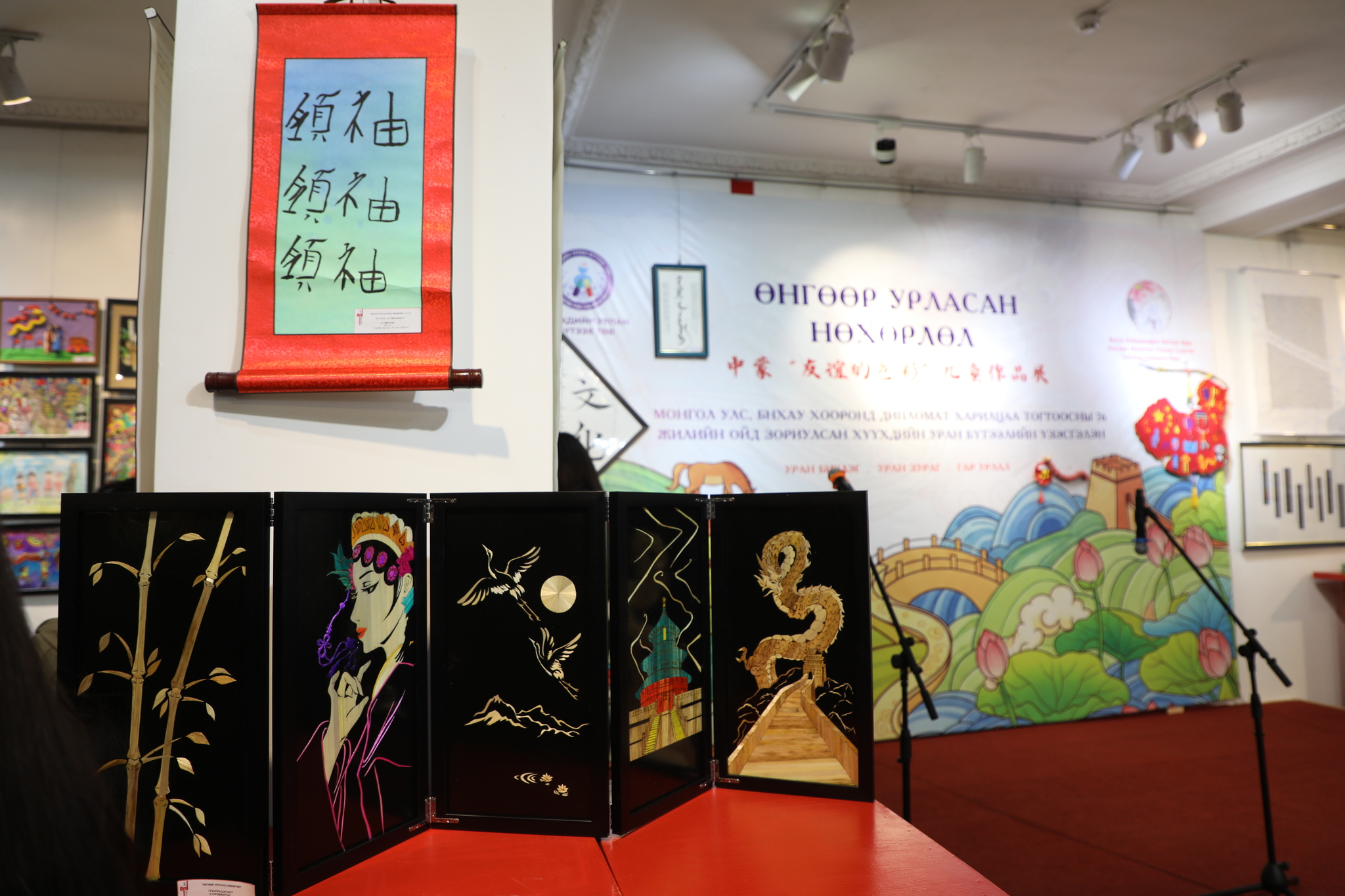 Монгол Улс дахь БНХАУ-ын Элчин сайдын яам болон Хүүхдийн урлан бүтээх төвийнхний хамтран зохион байгуулж буй эл үзэсгэлэнд манай орны 21 аймаг болон ӨМӨЗО-ы 6-18 насны хүүхдүүдийн нийт 1400 гаруй бүтээлийг дэлгэж буйгаараа онцлогтой. 14 хоногийн турш үргэлжлэх энэхүү үзэсгэлэнгээс хоёр орны хүүхэд багачуудын уран бичлэг, зургийг тольдож болох юм. Мөн тэдний эсгий, мод, даавуугаар урласан сонирхолтой бүтээлүүдийг үзэх боломжтой.