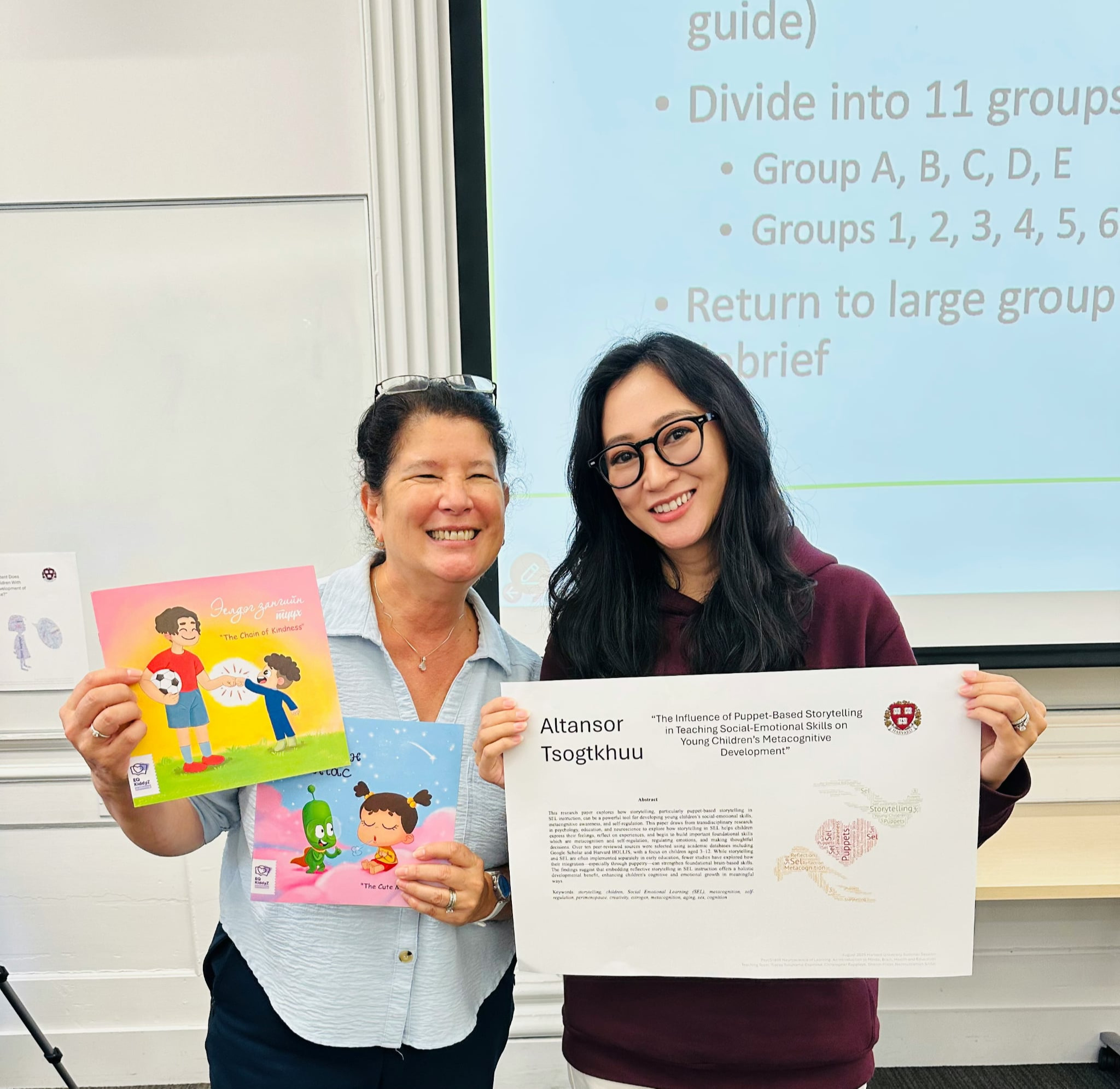 -Хүүхдэд сэтгэл зүйн хувьд аюулгүй орчин бүрдүүлж байж л боловсрол, төлөвшил олж авах суурийг бэлдэж өгнө гэсэн итгэл үнэмшилтэйгээр анх “Q кids” эцэрлэгээ зүрх сэтгэлийн боловсролын хөтөлбөртэйгөөр эхлүүлсэн. Энэ зорилго маань эхлээд 100, дараа нь 500, 1000 гэж явсаар өнөөдөр бид давхардсан тоогоор 10 000 гаруй хүүхдэд хөтөлбөрөө хүргэж, хэрэгжүүлсэн байна. Хөтөлбөрийнхөө хүрээнд бид оюуны өмчийн эрхтэйгээр таван цуврал ном гаргаж, багш нарт сургалт явуулдаг. Харин энэ намраас НҮБ-ын Хүүхдийн сангийн санхүүжилттэйгээр зүрх сэтгэлийн боловсролын хөтөлбөрийг нийслэлийн 131 болон 57 дугаар сургуулийн I-V ангийнханд зааж эхэллээ. Боловсролын яамнаас дэмжихээ илэрхийлж, бодлогын түвшинд хэрэгжүүлнэ гэсэнд баяртай байгаа. Аливаа зүйлийг эхэлж л байвал үр дүн гарна гэдэгт итгэдэг. Зүрх сэтгэлийн боловсролын талаар 10 жилийн өмнө намайг ярьж эхлэхэд хүмүүс ойлгодоггүй, сонсохыг ч хүсдэггүй байлаа. Одоо харин ихэд сонирхож, анхаардаг болсон. Үр дүн эхнээсээ гарч байна.