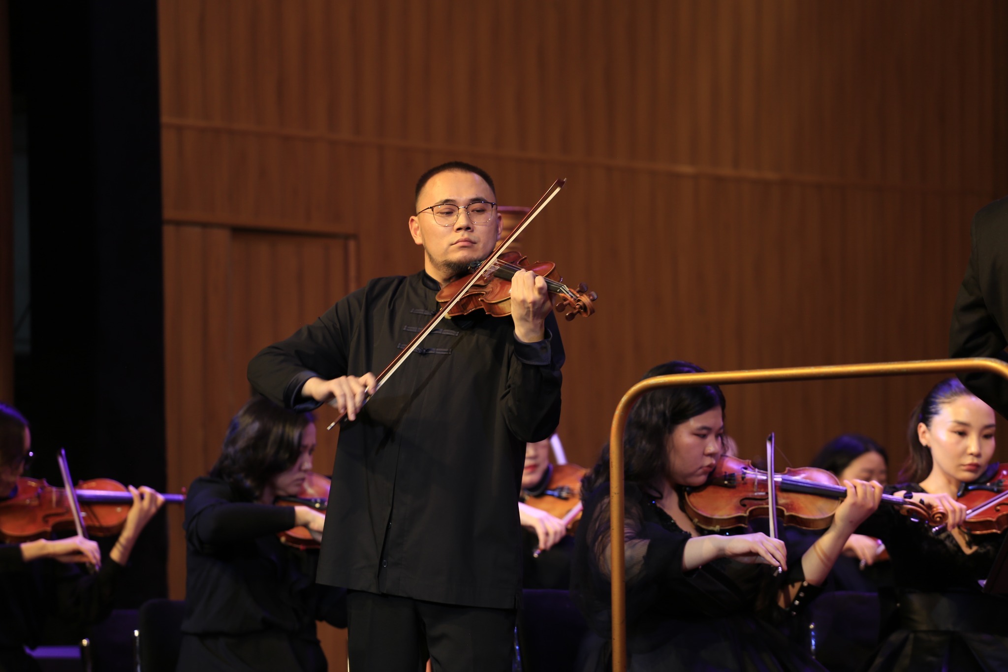 Дараа нь Норвегийн хөгжмийн зохиолч Эдвард Григийн таван хэсгээс бүрдэх “Peer gynt suite no. 1, op 46”-г эгшиглүүлэв. Энэ нь жүжгийн зохиолч Генрик Ибсений “Пир Гюнт” жүжигт зориулсан зохиол билээ. Энэ бүтээлийг телевизийн олон шоу нэвтрүүлэг, тэр ч бүү хэл “Том ба Жерри” зэрэг хүүхэлдэйн кинонд ч ашигласан нь бий. Уг тоглолт дахь цор ганц Азийн бүтээл бол Ган Чен, Хэ Жанхао нарын “Эрвээхэйнд дурлагчдын хийлийн концерт”. “Лян Шаньбо ба Жү Интай” гэх Хятадын домогт суурилж бичсэн учраас үүнийг Хятадын “Ромео Жульетта” ч хэмээдэг аж. Энэ бүтээлд гоцлох уран бүтээлчээс тун нарийн техникийн мэдрэмж, мэргэжлийн ур чадвар, тэсвэр тэвчээр шаардах нь илэрхий байв. Харин энэ үүргийг Халиуны Санчир хүлээжээ. Гоцлол хөгжимчин удирдаачтайгаа тусдаа бэлтгэл хийдэг. Улсын филармонийн ерөнхий удирдаач Д.Нямдаш хийлч Х.Санчир нар хэр хэмжээнд хамтарсныг одоо л харах хэрэгтэй гэж бодов. Гоцлооч үнэхээр сайн байлаа. Тэрбээр концертмейстер буюу уг найрал хөгжмийн ахлах хийлч, удирдаачийн дараа эрэмбэлэгдэх нэр хүндтэй, өндөр хариуцлагатай хөгжимчин. Мэргэжлийн техникүүдээ төгс гүйцэтгэж, оркестртойгоо давгүй зохицож ажиллалаа шүү.