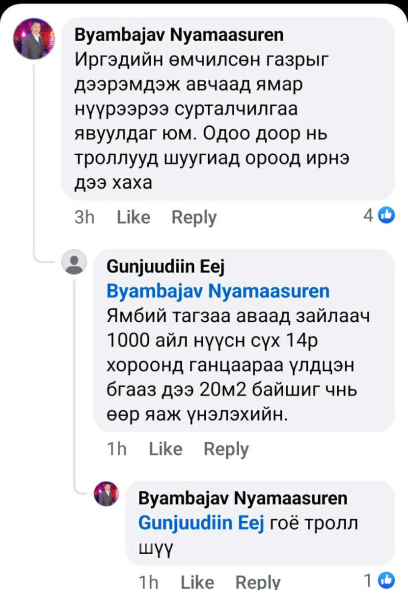 Энэ явдлын дараа Б.Нямаасүрэнгийн фэйсбүүк рүү нэр зураг тодорхойгүй хэд хэдэн тролл хаягаас “Чаддаг юм бол наад жаахан газраа тэврээд зайл”, “Өдийхөн жаахан газраа ямар үнэтэй үнэлдэг шуналын тулам бэ” гэх зэргээр дайралт ирсэн аж.