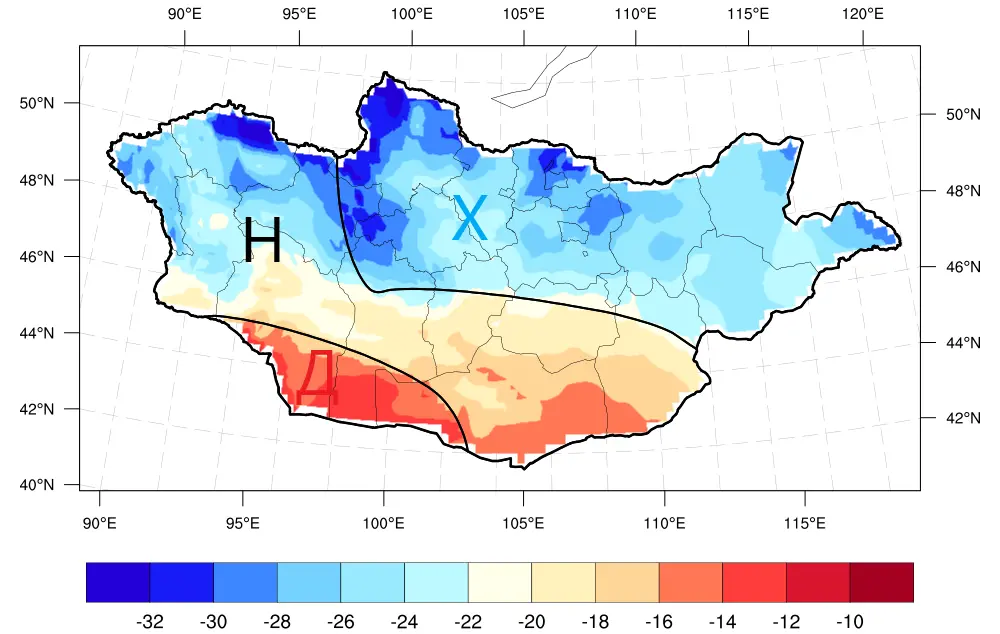 Говийн аймгуудын нутгаар. Энэ сард агаарын дундаж температур Өмнөговийн баруун хэсгээр олон жилийн дунджаас дулаан, Дундговь, Дорноговийн хойд хэсгээр олон жилийн дунджаас хүйтэн, бусад нутгаар дунджийн орчим байх бол хур тунадас нийт нутгаар олон жилийн дунджийн орчим байх төлөвтэй байна. Нэгдүгээр арав хоногийн эхэн, гуравдугаар арав хоногийн сүүлээр олон жилийн дунджаас бага зэргийн дулаан байх бол нэгдүгээр арав хоногийн сүүл, хоёрдугаар арав хоногийн ихэнх хугацаа, гуравдугаар арав хоногийн эхэн үеүдэд хүйтний эрч чангарч, ихэнх нутгаар олон жилийн дунджаас 2-4°С-аар хүйтэн байна. Нэгдүгээр арав хоногийн эхэн, гуравдугаар арав хоногийн дунд болон сүүлчээр ихэнх нутгаар бага зэргийн цас орж, салхи шуургатай, зарим газраар цасан шуурга шуурч болзошгүй байна.