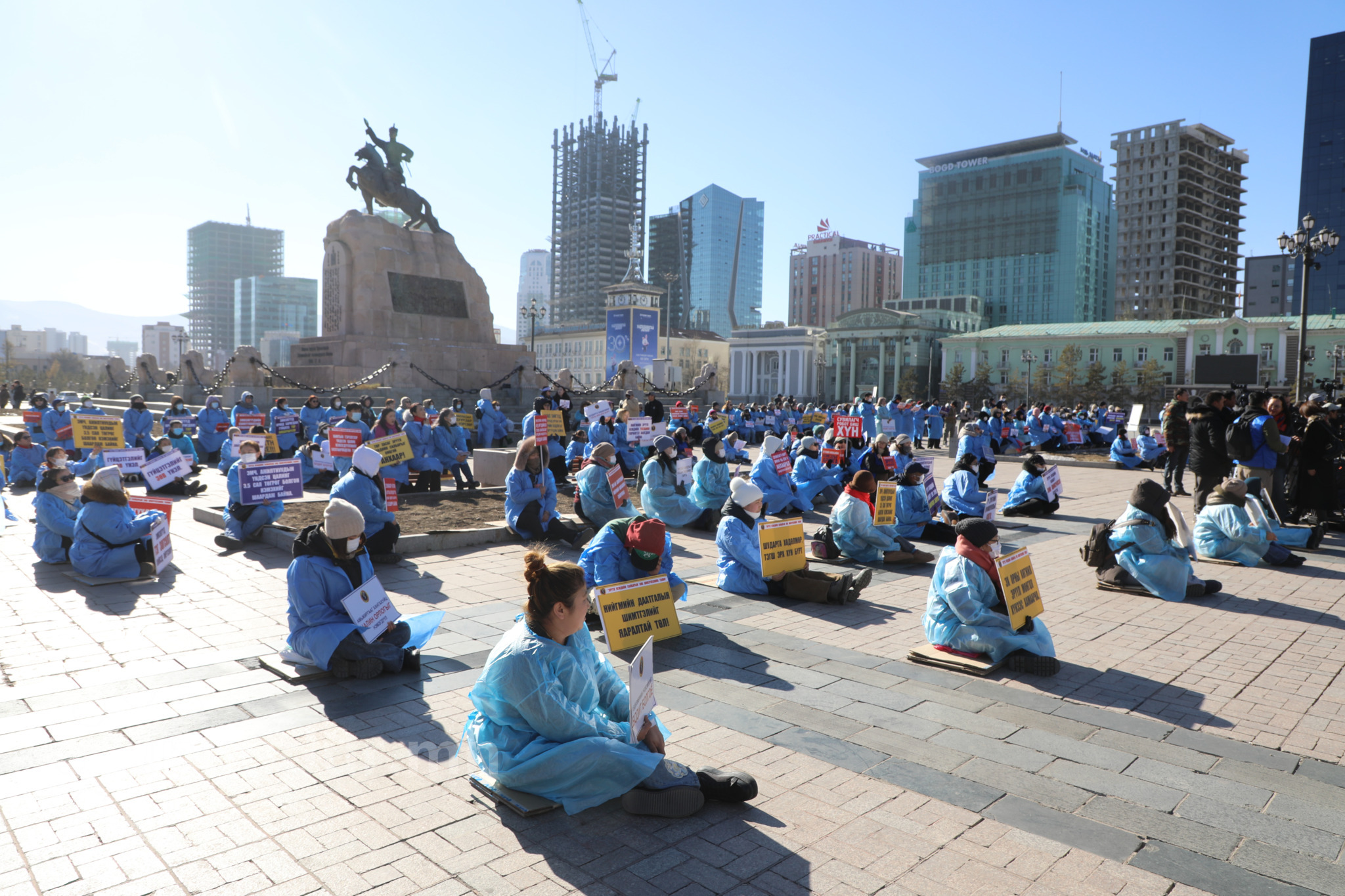 Эмч, эмнэлгийн ажилтнууд үндсэн цалингаа 3.5 саяд хүргэхийг шаардан Сүхбаатарын талбайд суулт зарлаад хэдийн долоо хоног өнгөрсөн. Гэвч холбогдох байгууллагуудаас хариу өгөөгүй тул тэд тэмцлийн дараагийн хэлбэрт шилжиж, ажил хаяхаар болжээ.