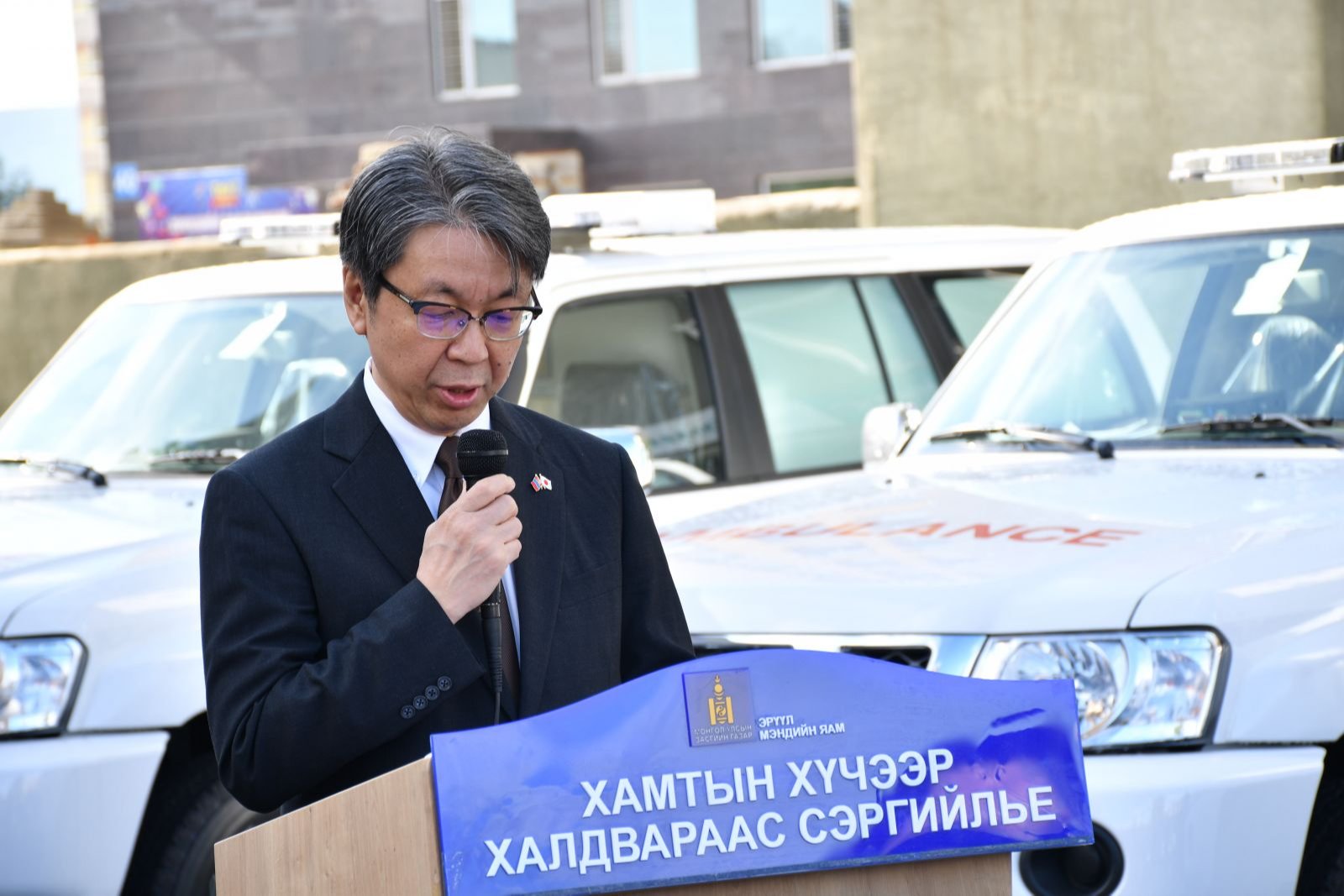 Япон улсын Засгийн газрын буцалтгүй тусламжаар 21 аймгийн Нэгдсэн эмнэлэг, хоёр сумын Эрүүл мэндийн төв, ГССҮТ-ийн Түлэнхийн төвд яаралтай тусламжийн үйлчилгээ үзүүлэх бүрэн тоноглогдсон “Ниссан Патрол” загварын түргэн тусламжийн автомашинтай боллоо.