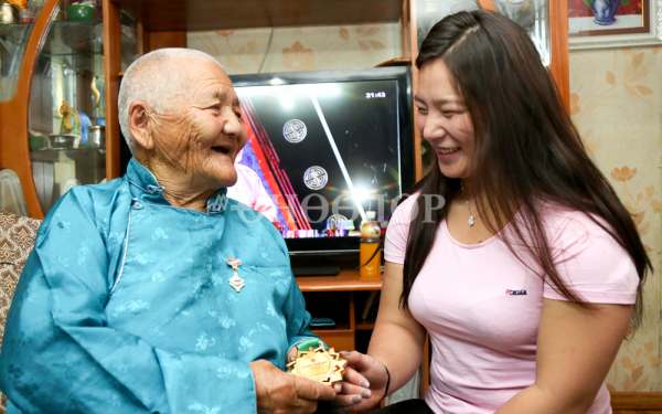 Залуудаа эх орондоо хийхээ хийж, хожим нь ИНЕТ-т 15 жил ажиллаад, тэндээс өндөр насны тэтгэвэрт гарсан Д.Долгорсүрэн гуайг Ахмадын баярын өмнөхөн ийн урамшуулсан нь энэ гэр бүлийн хувьд томоохон баярт үйл явдал болжээ. “Эмээ нь төр, засгийн шагнал, одон медаль авах тухай бодож явсангүй. Ажиллаж байсан байгууллага, хамт олондоо гайгүй нэр хүндтэй явсан болов уу, намайг мартаагүй байж гээд баярлаж сууна” хэмээгээд инээмсэглэсээр угтав.