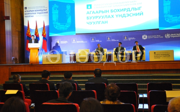 Монгол Улсын Ерөнхийлөгчийн санаачилгаар Агаарын бохирдлыг бууруулах Үндэсний чуулганыг Монгол Улсын Ерөнхийлөгчийн Тамгын газраас Орчны бохирдлыг бууруулах үндэсний хороо, БОАЖЯ, ЭМЯ, Эрчим хүчний яам, Барилга, хот байгуулалтын яам, Нийслэлийн Засаг даргын Тамгын газар, Дэлхийн эрүүл мэндийн байгууллагатай хамтран өнөөдөр Төрийн ордны Их танхимд зохион байгууллаа.