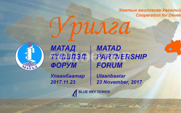 Дорнод аймгийн Матад сумын хөгжлийн чиг хандлагыг тодорхойлж, тус сумын хөгжлийн асуудалд төрийн болон төрийн бус байгууллага, иргэд, олон улсын байгуллагын анхаарлыг төвлөрүүлэн, хамтын ажиллагааг өргөжүүлж, үр өгөөжийг нь дээшлүүлэх зорилго бүхий “Матад түншлэл-2017” форумыг энэ сарын 23-ны өдөр Улаанбаатар хотод зохион байгуулах гэж байна. Уг үйл ажиллагаа нь тухайлсан нэг сумын хөгжлийн асуудлыг олон улсын хэмжээнд тавин хэлэлжүүлж буй анхны форум гэдгээрээ онцлогтой юм.