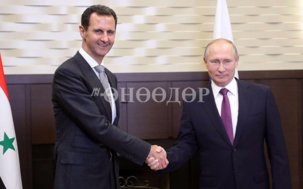 ОХУ, Сирийн Төрийн тэргүүн Владимир Путин, Башар Асад нар урьдчилан мэдэгдэлгүйгээр уулзав. Сирийн нутаг дэвсгэрт террористуудтай тэмцэх талаар хамтран ажиллаж дууссаныг Оросын Ерөнхийлөгч уулзалтын үеэр мэдэгдлээ. Тэд энэ сарын 20-нд ОХУ-ын Сочи хотноо уулзсан байна. Төрийн тэргүүн нар Сирийн байдлыг зохицуулах, энэ үйл явц дахь Оросын оролцооны талаар ярилцжээ.