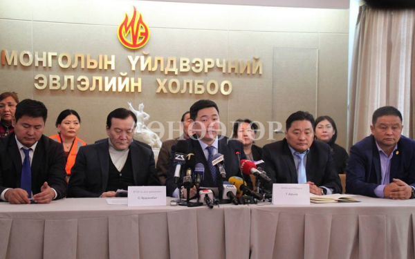 МҮЭ-ийн холбооноос Хөдөлмөр, нийгмийн зөвшлийн гурван талт 2017-2018 оны Улсын хэлэлцээрийн хэрэгжилт, тэтгэвэрийн нас, татвар нэмэгдүүлсэн асуудлаар МҮЭ-ийн холбооны дэд ерөнхийлөгч С.Эрдэнэбат, МҮЭ-ийн холбооны ЕНБД Г.Адъяа, салбарын үйлдвэрчний эвлэлийн холбоодын дарга нар өнөөдөр мэдээлэл хийлээ.