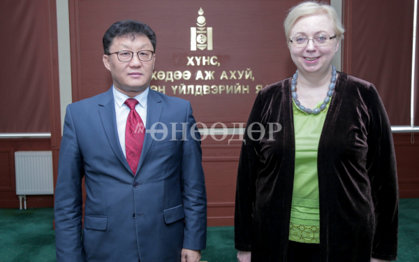 ХХААХҮЯ-ны Төрийн нарийн бичгийн даргын албан үүргийг түр орлон гүйцэтгэгч Д.Энхбат Литва улсаас БНХАУ-ын Бээжин хотод Хятад улс болон Монгол Улсыг хавсран суугаа онц бөгөөд бүрэн эрхт Элчин сайд Ина Марчиулионитегийг өнөөдөр /2018.03.15/ хүлээн авч уулзлаа.