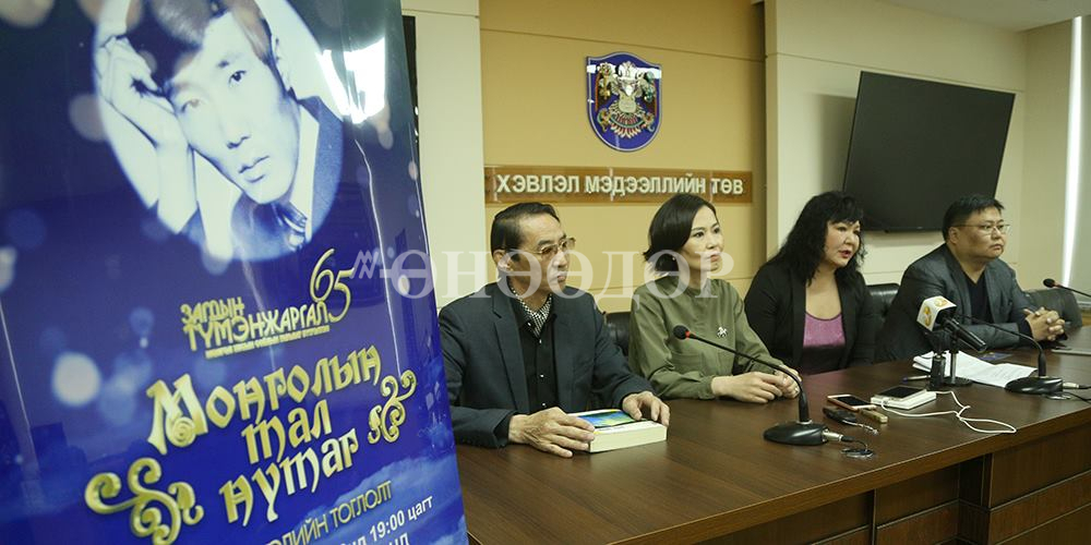 Соёлын гавьяат зүтгэлтэн, зохиолч, яруу найрагч Загдын Түмэнжаргал агсан мэндэлсний 65 насны ойд зориулсан "Монголын тал нутаг" хүндэтгэлийн тоглолт энэ сарын 18-нд Соёлын төв өргөөнд болно. Тоглолтын талаар зохион байгуулагчид өнөөдөр нийслэлийн Хэвлэл мэдээллийн төвд сэтгүүлчдэд мэдээлэл хийв.