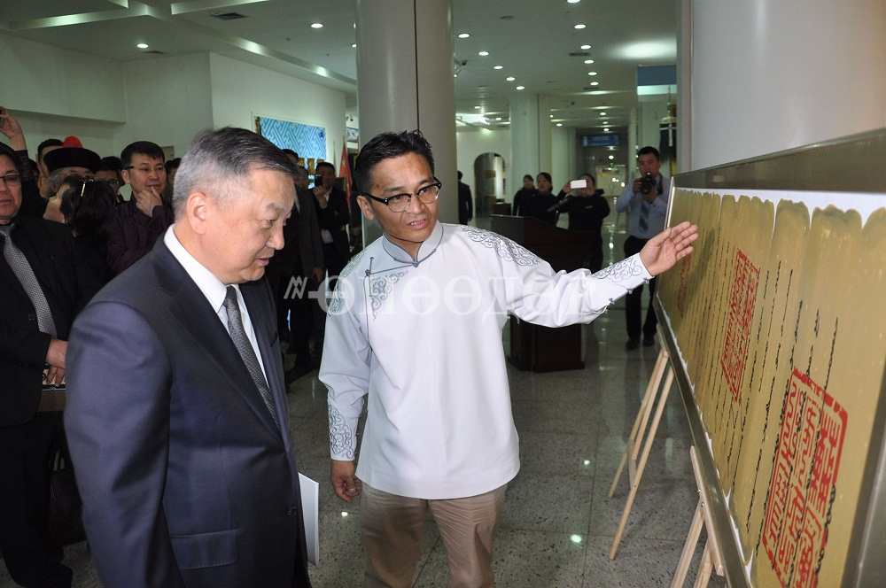 Энэ үзэсгэлэнг Монгол Улсын Ерөнхийлөгчийн Тамгын газрын дарга З.Энболд нээж "Монгол Улсын Ерөнхийлөгчийн ивээл дор жил бүр уламжлал болгон зохион байгуулдаг Үндэсний бичиг үсгийн баярт зориулан бидний өвөг дээдэс, алтан ургийн Их хаадаас Европын хаадад илгээж байсан захидлуудын хуулбарыг дэлгэн үзүүлж байна. Захидлуудыг уран бичлэг-дүрслэх урлагийн хэлбэрт оруулан, уран бүтээл болгосон хүн нь уран бичигч, урлаг судлаач, докторант Э.Ариунболд юм. Эзэн Чингис хааныг залгамжлагч их хаадын энэ захидлууд нь дэлхийд гайхагдсан бичиг соёлын дахин давтагдашгүй үнэт өв төдийгүй Монголын төрт ёсны аугаа уламжлалыг илтгэн харуулсан түүхэн баримт юм. Энэ үзэсгэлэн нь захидлуудыг хуулбарлан цогцоор нь гаргаж байгаагаараа онцлогтой бөгөөд эх хэл, бичиг соёлоо олон нийтэд хүүхэд залууст бахархуулан таниулахад тустай юм. Хүрэлцэн ирсэн Та бүхнийг үзэсгэлэнг тогтон үзэхийг хүсэхийн зэрэгцээ урлаг судлаач Э.Ариунболдын судалгааны ажил, уран бүтээлд амжилт хүсье” гэсэн юм.