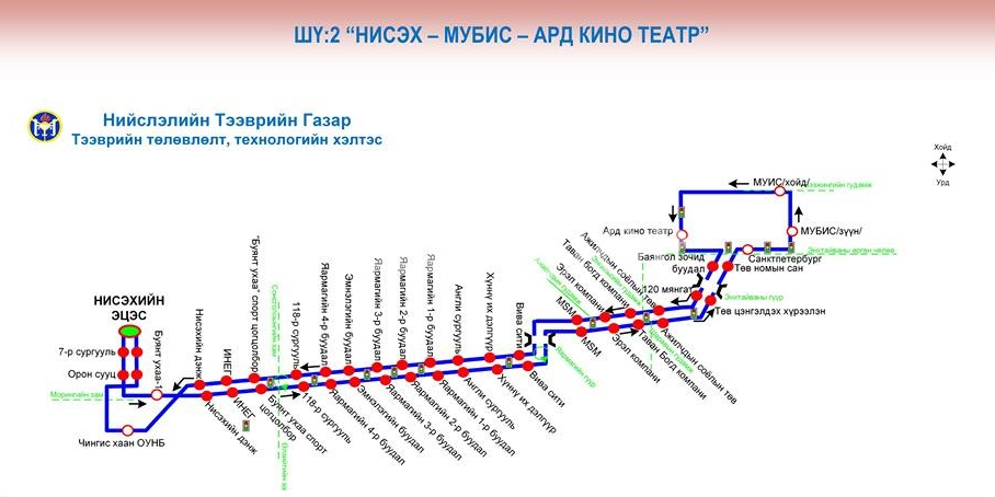 ЗҮ:2 “Гоодой-Тэнгис кино театр” чиглэлд 1 их багтаамжийн автобус 1:30 цаг тутамд Тэнгис кино театрын зогсоолоос;