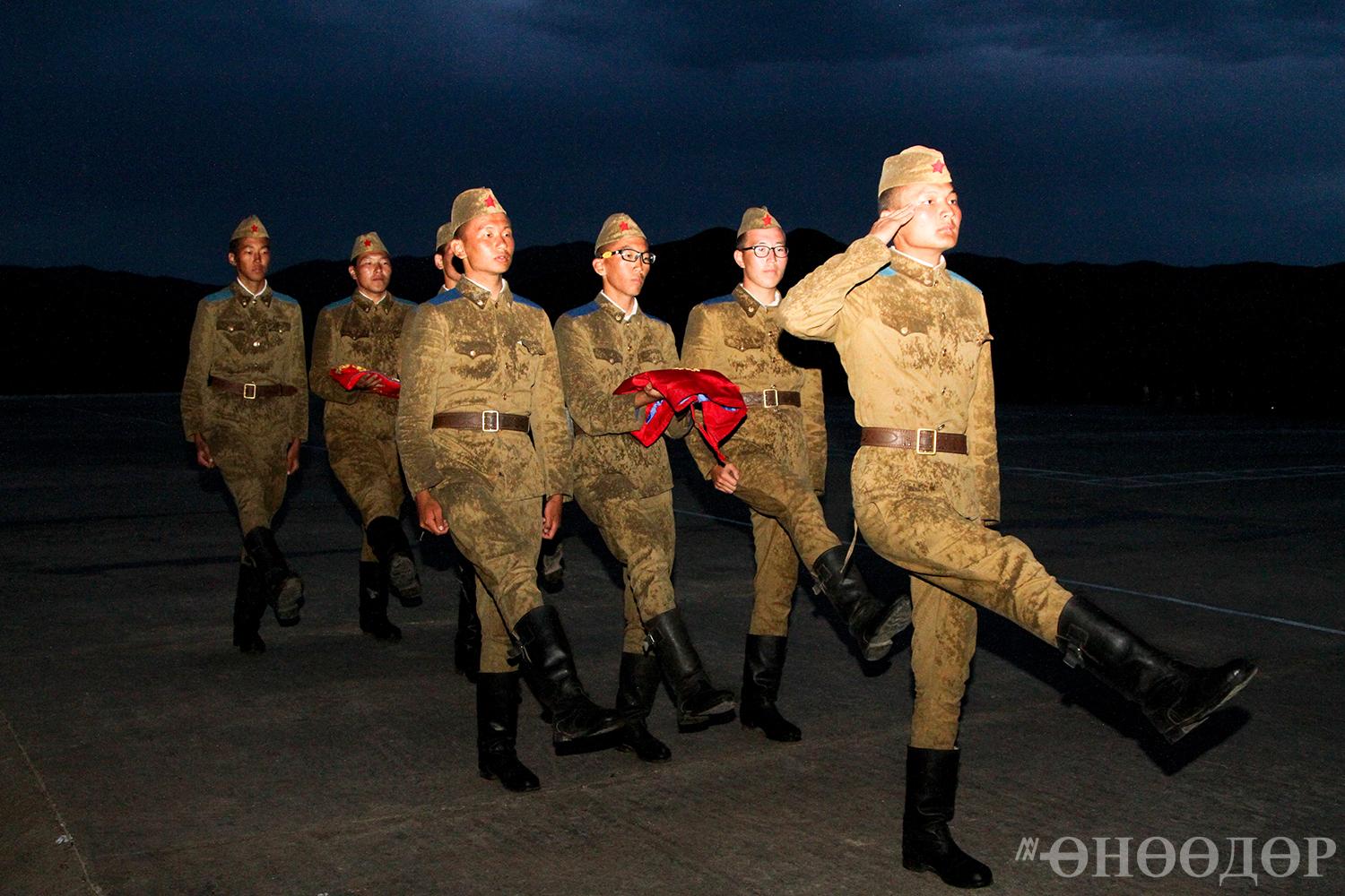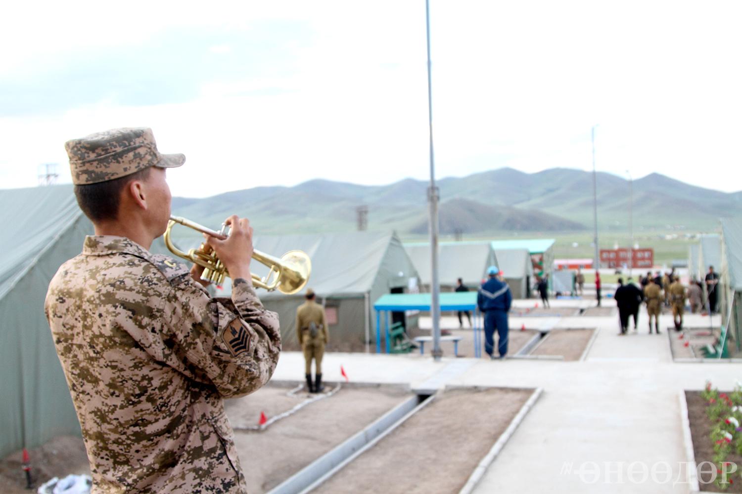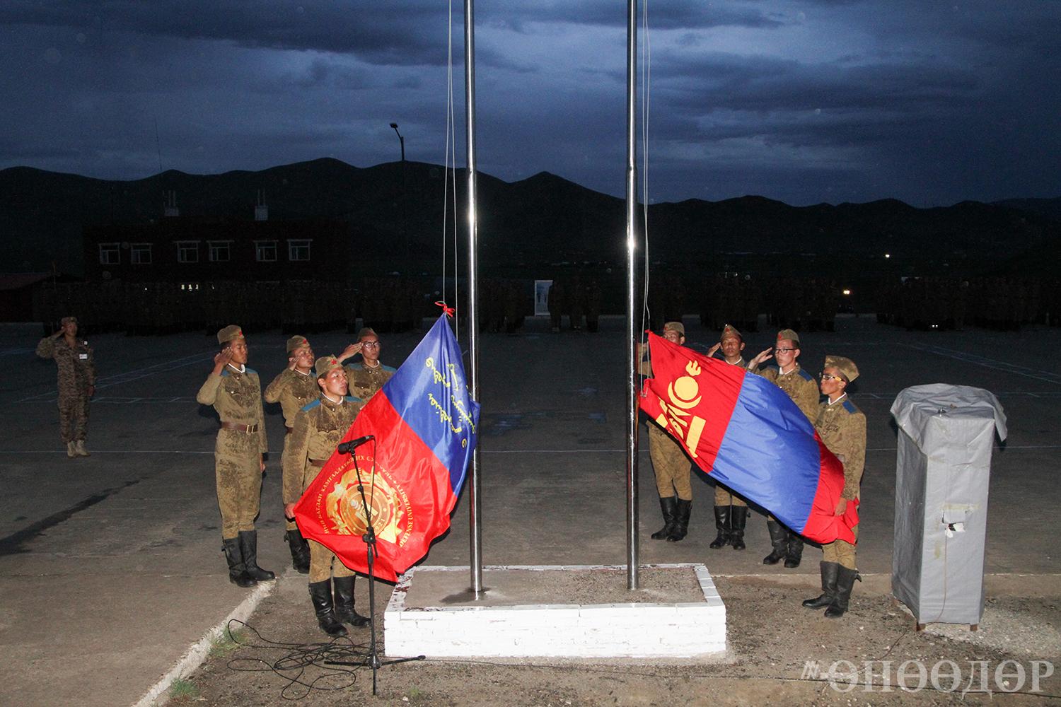 08.10 цаг. Өглөөний хоолоо зооглож, жагсаалын талбайд жагссан тэд Төрийн дууллаа эгшиглүүлж, Төрийн далбаагаа залах ёслол эхэллээ. Ёстой л эх орны төлөө зүтгэхэд хэзээд бэлхэн байгаа нь харагдаж, дотор огшоож байсан юм.