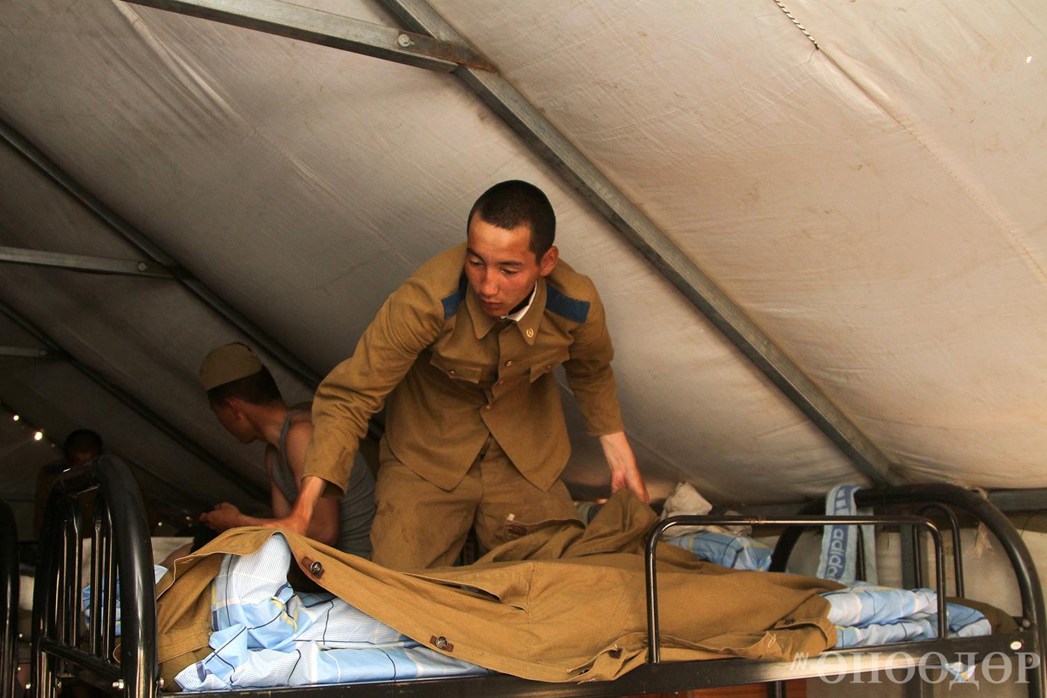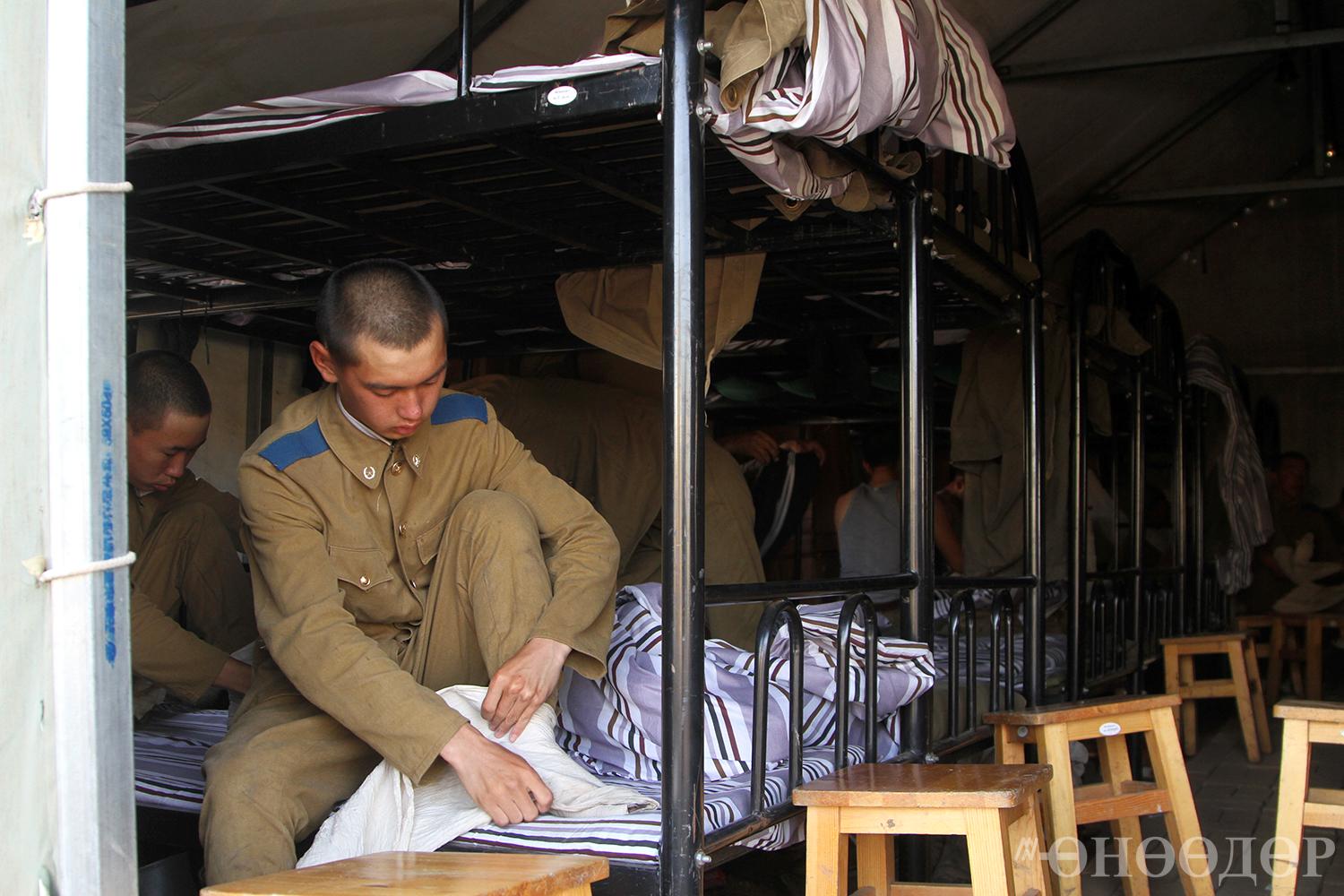 Тээврийн дээд сургуулийн нэгдүгээр дамжааны оюутан тэрбээр “Би цэрэгт ирээд ор хурааж, юм оёж сурсан. Ах, эгч хоёртой учраас айлын эрх хүүхэд байсан гэх үү дээ. Ээжийнхээ өвөрт унтдаг байсан тул бараг унтсан ороо ч хурааж үзээгүй. Харин энд ирээд ороо шоо шиг хэлбэртэй болгож, толийтол татаж хураагаад, захны даавуугаа хадаж сурлаа. Энд ирсэн эхний хоёр шөнө ээжийгээ зүүдэлсэн. Зүүдэндээ ээжтэйгээ банштай, борцтой цай хийж ууж байсан. Ээжийгээ л санаж байна. Хэлсэн үг бүр нь бодогдож, “Үнэхээр үнэн үг хэлж байж” гэдгийг ойлгож байна. Мөн тэсвэр хатуужил сууж, ядаж л бороонд норж үзэж буй” гэлээ.