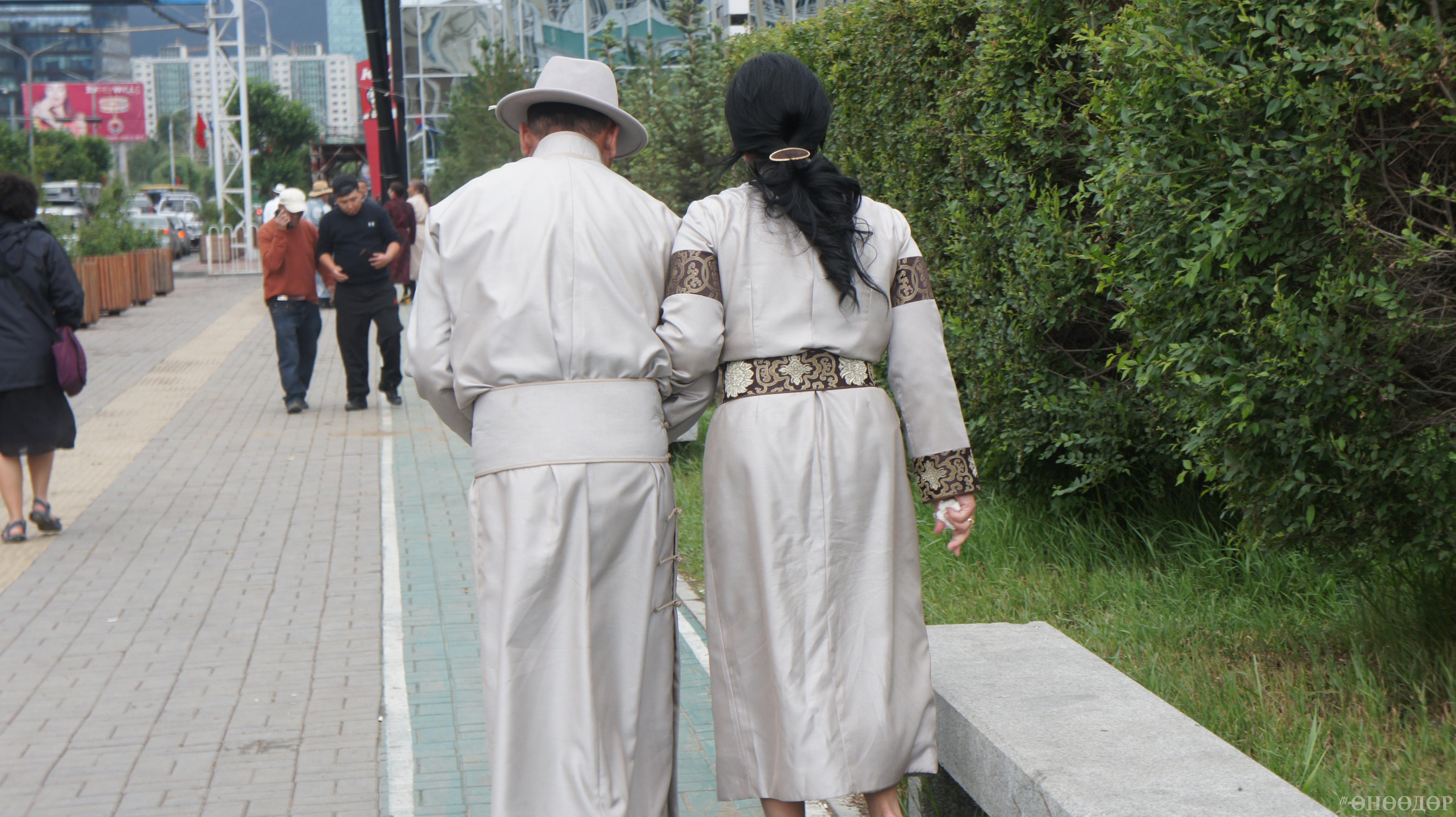 Жирийн үед дээл өмссөн хүмүүс ялгарч харагддаг бол наадмын үеэр чөлөөт хувцастай хүмүүс өөр харагдаж байна.