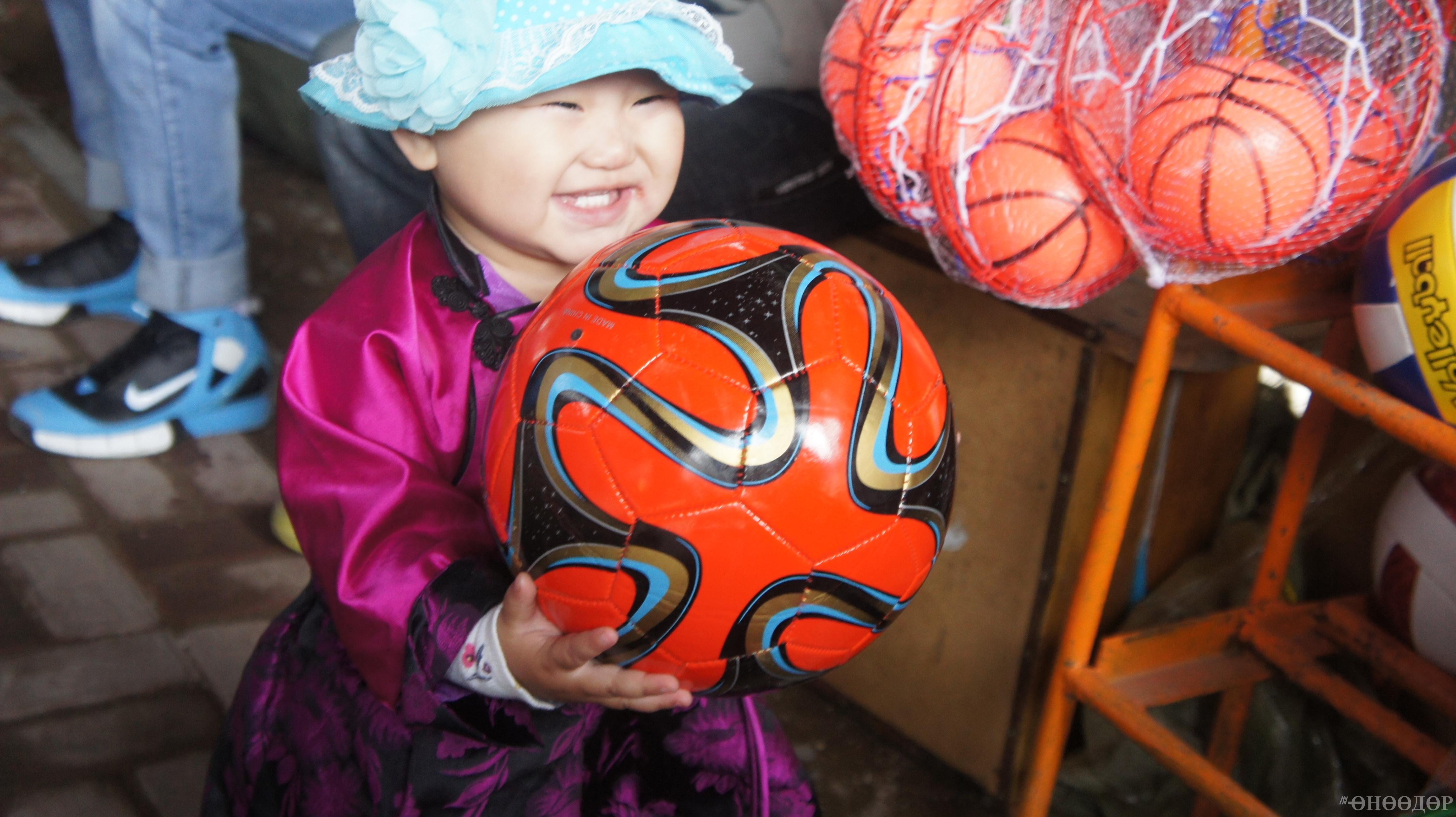 Хамгийн гол нь дөнгөж ургаж байгаа цахиураа гаргаад чин сэтгэлээсээ баясаж инээнэ. Үүнийг харсан наадамчин олон өхөөрдөөд л бөмбөг авчихаж байгаа юм даа. Хүүхдүүд чанартай инээдэг. Энэ нь үнэгүй суртачилгаа болно гээч.