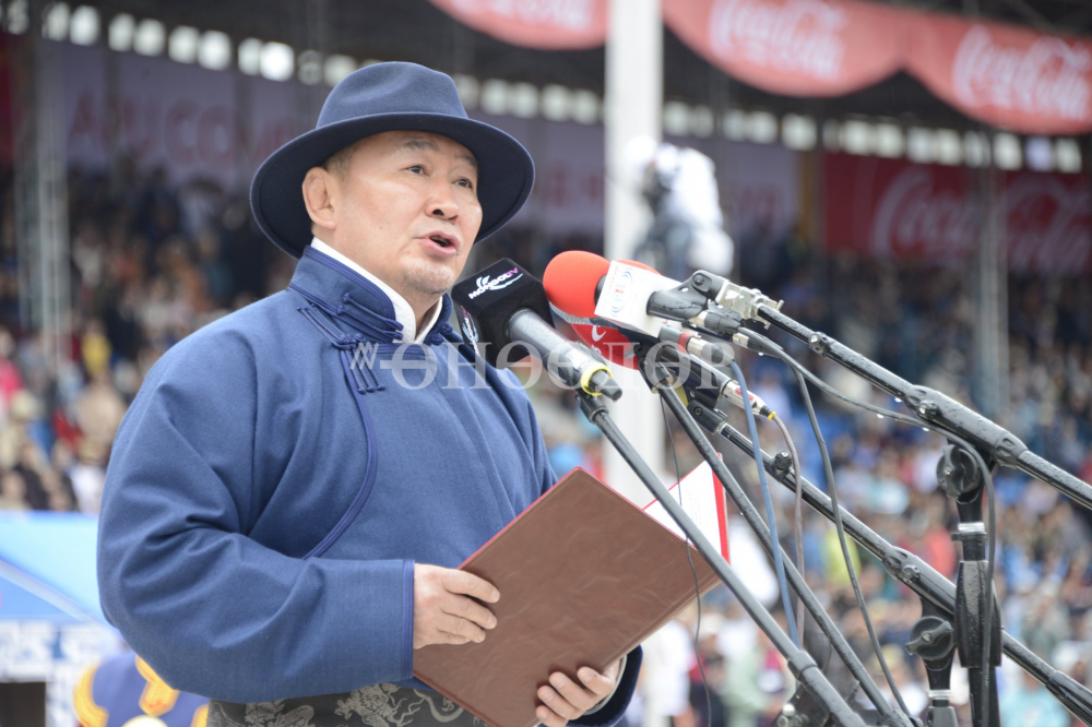 Бидний уламжлал соёлыг хүндэтгэн, Монгол оронд цаг заваа зориулан ирж наадмыг үзэж сонирхсон гадаадын зочид, төлөөлөгчдөд талархал илэрхийлж, сайн сайхан бүхнийг хүсье. Монгол наадам өндөрлөж байна. Ирэх жилийн наадмаар ахин баяртайгаар уулзацгаая, наадацгаая. Ивээлт наран мэт сайн үйлс дэлгэрсээр хамаг ертөнц гийх болтугай. Мөнх тэнгэрийн хүчин дор Монгол Улс цэцэглэн хөгжих болтугай” гэлээ.