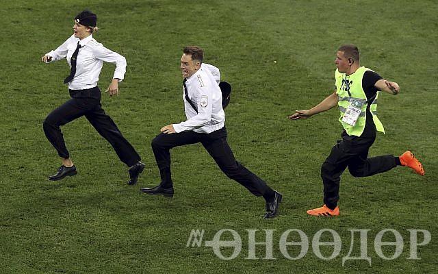 Хөлбөмбөгийн ДАШТ-ий финалын тоглолтын үеэр талбай дээр гүйн гарч ирсэн дүрэмт хувцастай дэггүй нөхдийг санаж байна уу? Тэд бол "Pussy Riot" буюу нийгэмд үймээн самуун таригч группын гишүүд аж. Тэд дөрвүүлээ байсан бөгөөд хоёр нь талбай дээр гарч ирсэн. Адтай нэг нь Мбаппетай алгаа цохилцоод амжсан гээч. Тэднийг төрийн албан хаагчийн дүрэмт хувцсыг зөвшөөрөлгүй ашигласан хэрэгт буруутгаж байгаа аж. Дахиж ийм үймээн самуун гаргахгүй байх үүднээс сахилагагүй залуусд 10 мянган рублийн торгууль, 160 цаг олон нийтийн ажил хийх шийтгэл, гурван жил спортын уралдаан тэмцээн үзэх эрхийг нь хассан байна.