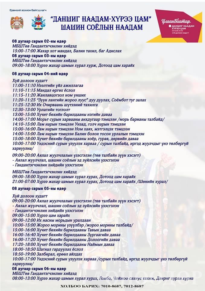 "Даншиг наадам Хүрээ цам 2018" шашин соёлын наадам ирэх сарын 4,5-ны өдрүүдэд Хүй 7 худагт болох гэж байна. Арга хэмжээний үеэр лам нарын дунд ном хаялцах, мэтгэлцэх, балин тосон урлалын тэмцээн зохиогддог ба цам харайх, маань татах, Соёмбот туг залах, шашны сүлд дуулал эгшиглүүлэх зэрэг олон сонирхолтой арга хэмжээнүүд болдог. Мөн 256 хүчит бөх барилдан, их насны болон жороо морьд уралдах бөгөөд морьт харвааны тэмцээнийг зохион байгуулна.
