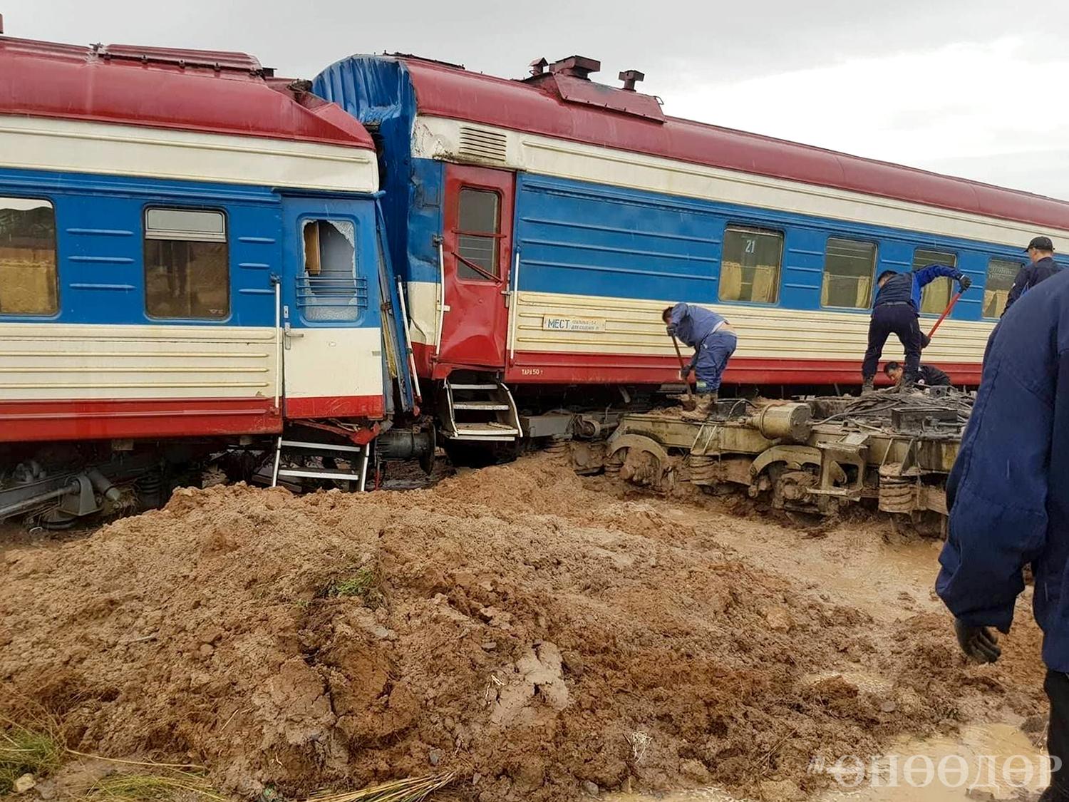 Өнгөрсөн шөнө орсон усархаг аадрын улмаас замын далан эвдэрснээс 328 зорчигч тээвэрлэж явсан галт тэрэгний зүтгүүр унаж, дөрвөн вагон замаас гарсан юм. Энэ ослын улмаас өмнөд чиглэлийн гал тэрэгний хөдөлгөөнийг хаагаад байгаа. Байгалийн гэнэтийн давагдашгүй хүчин зүйл гэж албаныхан мэдэгдэж буй ч ийм осол гарахаас урьдчилан сэргийлэх боломж байсан гэдгийг УБТЗ-д ажилладаг хэд хэдэн эх сурвалж хэлж байна.