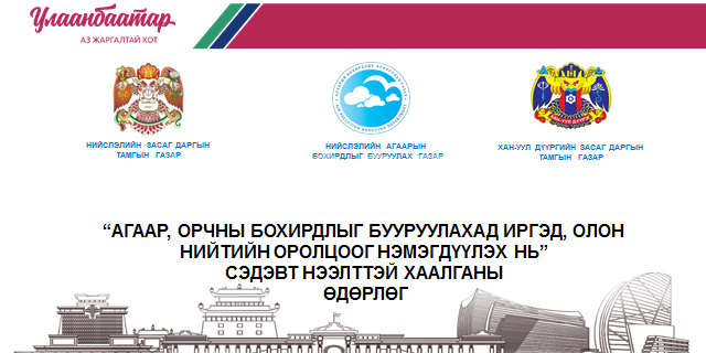 Улаанбаатар хотын агаар, орчны бохирдлыг бууруулах, агаарын чанарыг сайжруулах хүрээнд хэрэгжүүлж байгаа ажлыг иргэд, олон нийтэд танилцуулах зорилгоор “Агаар, орчны бохирдлыг бууруулахад иргэд, олон нийтийн оролцоог нэмэгдүүлэх нь” сэдэвт нээлттэй хаалганы өдөрлөгийг 2018 оны 08 дугаар сарын 18-ны өдөр 11:00-16:00 цагийн хооронд Хан-Уул дүүргийн 7 дугаар хороо 60 дугаар сургуулийн арын талбайд зохион байгуулагдах тул үйл ажиллагаагаа сурталчлан оролцох аж ахуй нэгж, байгууллагууд хүрэлцэн ирэхийг урьжээ.