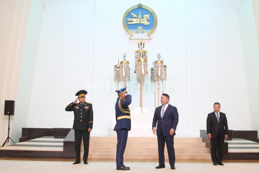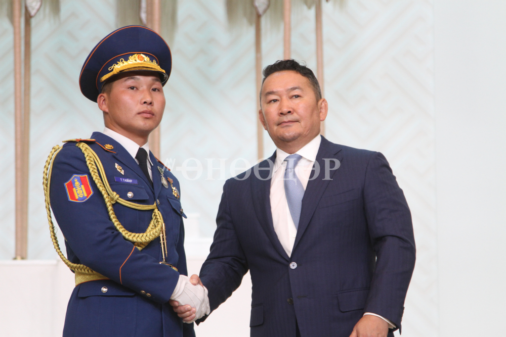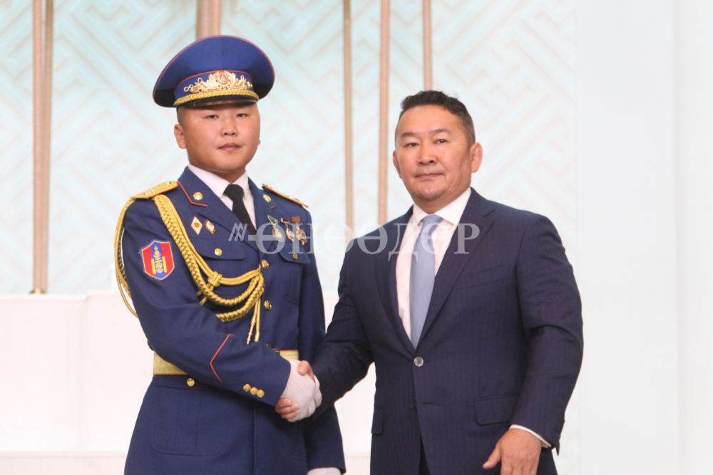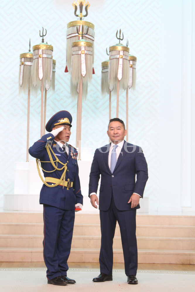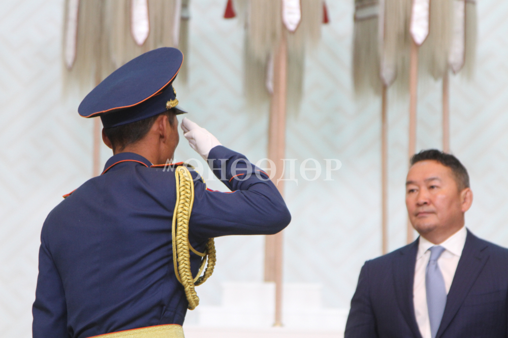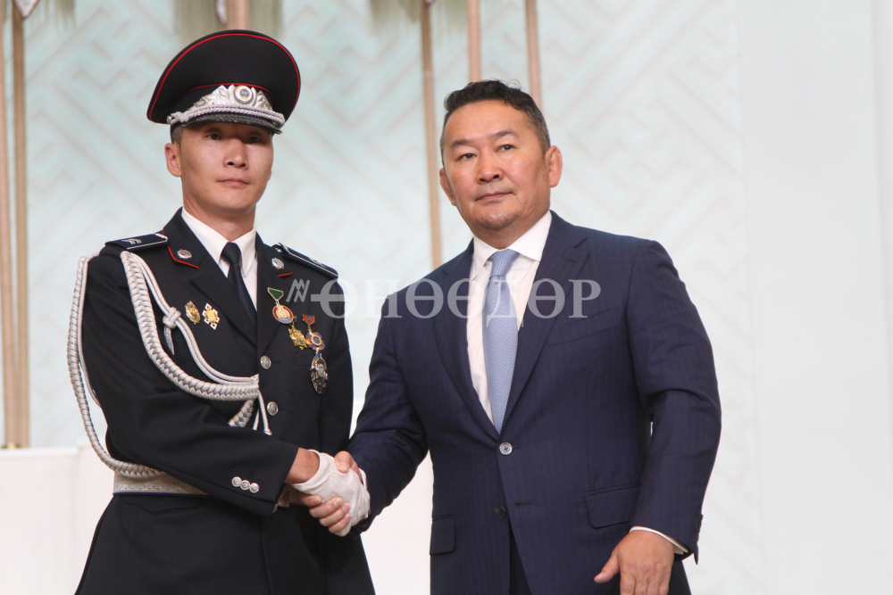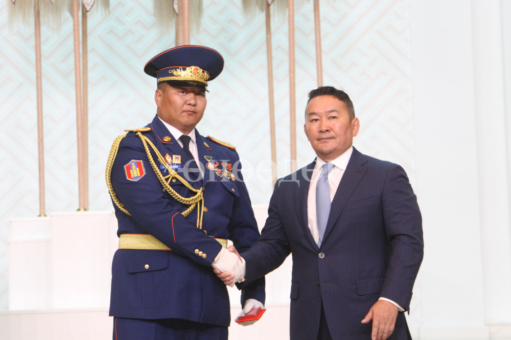 Монгол Улсын Ерөнхийлөгчийн зарлигийг өнөөдөр Төрийн есөн хөлт, цагаан тугт танхимд уншиж сонордуулан, Төрийн одон медалийг Монгол Улсын Ерөнхийлөгч Х.Баттулга гардуулав.