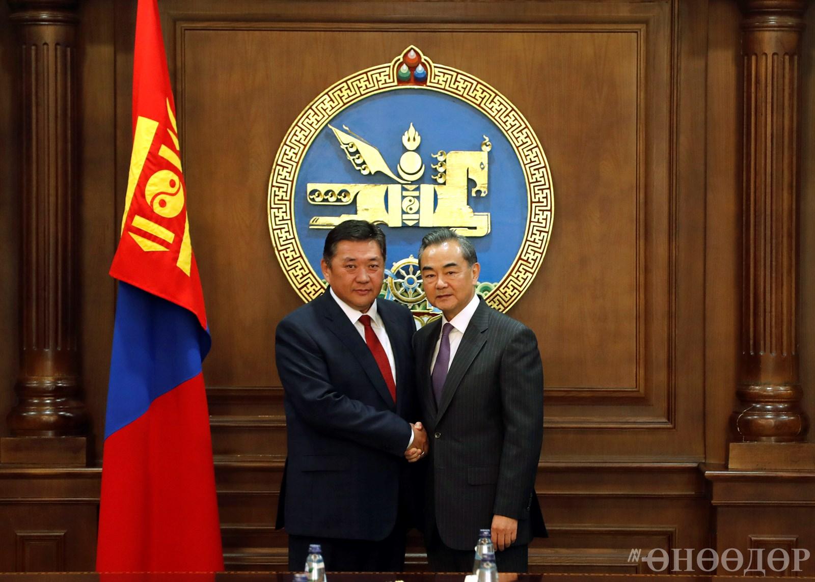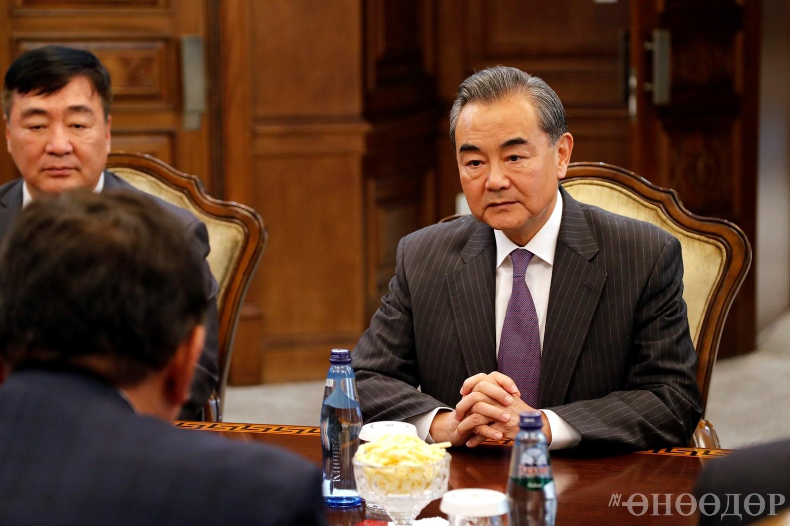 Монгол Улс, БНХАУ-ын хооронд тогтоосон Иж бүрэн стратегийн түншлэлийн хүрээнд олон салбарт бүхий л чиглэлээр харилцаа хамтын ажиллагаа сүүлийн жилүүдэд өргөжин, тодорхой үр дүнгээр баяжиж байгаад сэтгэл их хангалуун байгаагаа тэмдэглэлээ. Ноён Ван И уулзалтын эхэнд БХАТИХ-ын Байнгын хорооны дарга Ли Жаньшүгийн мэндчилгээг УИХ-ын дарга М.Энхболдод уламжлаад, хүлээн авч уулзсанд талархал илэрхийлсэн юм. Тэрбээр "Монгол Улсын Их Хурал бол ард түмний төлөөлөл бөгөөд хоёр орны ард иргэд хоорондын харилцааг өргөжүүлэх, ойлголцлыг нэмэгдүүлэхэд чухал үүрэг гүйцэтгэх боломжтой юм. Хоёр улсын ард түмэн хоорондын харилцан ойлголцол нэмэгдэн, найрсаг харилцаа бэхжсэн тохиолдолд БНХАУ болон Монгол Улсын харилцаа хамтын ажиллагааны тогтвортой хөгжлийн том түлхэц болох нь лавтай. БНХАУ бусад улс оронтой эрх тэгш харилцах зарчмыг баримталдаг. Хөршийн хувиар Монгол Улсын тусгаар тогтнол, бүрэн эрхийг хүндэтгэж ирсэн болохыг хоёр орны Гадаад харилцааны сайд нарын өнөөдрийн уулзалтын үеэр онцлон ярилцлаа. Хоёр улс бүх түвшиндээ харилцан ойлголцож хамтран ажиллах нь чухал. Монгол Улсын Их Хурлын даргын хувиар Та хоёр улсын ард иргэд хоорондын харилцан ойлголцлыг нэмэгдүүлэхэд анхаарал хандуулна гэж найдаж байна” гэлээ. Уулзалтын үеэр “Бүс ба Зам” санаачилгын үр ашгийн талаар, Монгол Улс дэмжин оролцвол эдийн засаг, нийгмийн харилцаанд гарах олон талын ахиц дэвшлийн талаар ярилцав. Тухайлбал, дээрх санаачилгын хүрээнд дэд бүтцийн бүтээн байгуулалт хийгдсэнээр худалдааны эргэлт нэмэгдэн, бизнесийн хамтын ажиллагаа идэвхжиж, иргэд хоорондын харилцаа өргөжих замаар улс орны хөгжилд үнэтэй хувь нэмэр оруулах ач холбогдолтой бөгөөд хамтын ажиллагаанд Монгол Улсын санаачилга, нийт ард түмнийх нь хүсэл эрмэлзлэлийг хүндэтгэн үзэх болно гэдгийг Ноён Ван И хэллээ. Мөн “Бүс ба Зам” санаачилгын анхаарч буй нэг чухал салбар бол байгаль орчны асуудал бөгөөд БНХАУ-ын төрийн зүгээс ногоон хөгжлийг дэмжсэн бодлогуудыг хэрэгжүүлж байгаа талаар дурдав. Түүнчлэн Монгол Улс уг санаачилгыг дэмжин оролцсоноор экспортоо нэмэгдүүлэх, нэмүү өртөг шингэсэн бүтээгдэхүүн үйлдвэрлэх, бүх төрлийн үйлдвэрлэл хөгжих бололцоо бүрдэх ач холбогдолтой гэв.