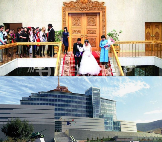 "Ардын хувьсгалын 50 жилийн ойгоор Л.И.Брежнев айлчилахад А.И. Филатова "Монголын залуу хосууд дурсамж үлдээх хуримын ордон барьж өгөөч" гэсэн хүсэлтийн дагуу ЗХУ-ын буцалтгүй тусламжаар Ардын зураач Д.Амгалан, алдарт сийлбэрч Л.Чуваамид (Мисс Мичидмаагийн аав, Сумьяабазарын хадам гэдгээр ч залуус мэднэ) нар зураг эсхизийг нь гарган барьсан түүхтэй.