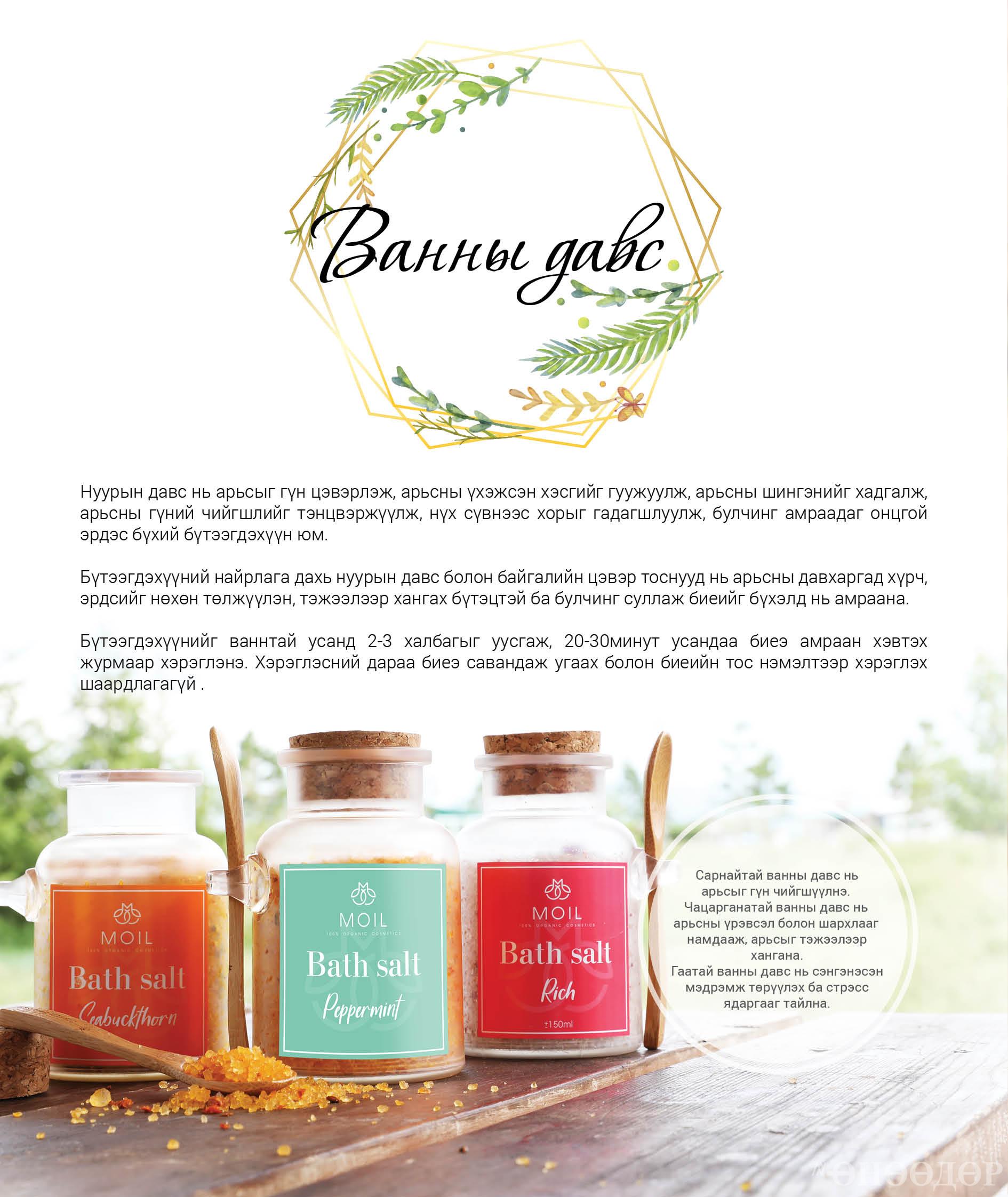 Та МОЙЛ брэндийн нэрийн дэлгүүрээс 37 орчим нэр төрлийн Органик арьс арчилгааны бүтээгдэхүүнийг сонгон хэрэглэх боломжтой бөгөөд тус компанийн хамт олон хэрэглэгчидийн хүсэлд шаардлагад нийцүүлэн усан суурьтай хүүхдийн болон нүүр арчилгааны бүтээгдэхүүнээ тун удахгүй худалдаанд гаргахаар ажиллаж байгаа гэнэ.