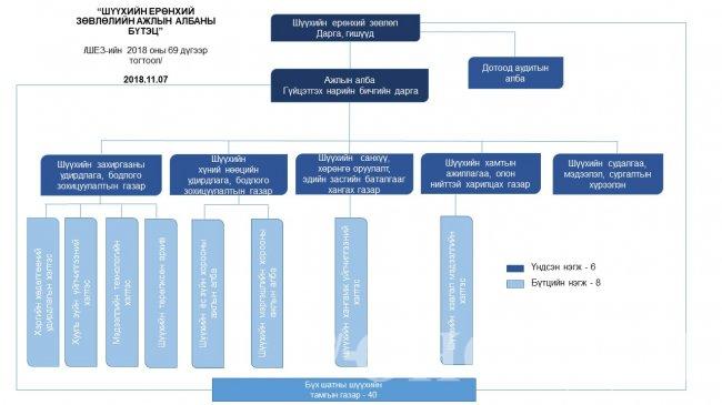 Шүүхийн ерөнхий зөвлөлийн 2018 оны 11 дүгээр сарын 07-ны өдрийн 39 дүгээр тогтоолоор Шүүхийн захиргааны тухай хуулийн 14 дүгээр зүйлийн 14.2, 15 дугаар зүйлийн 15.2 дахь хэсгийг тус тус үндэслэн Ажлын албаны зохион байгуулалтын бүтэц, төрийн захиргааны болон үйлчилгээний албан тушаалын орон тоог шинэчлэн батлав.