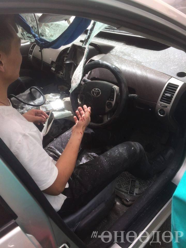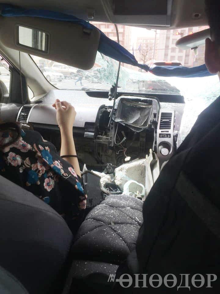 Өнөөдөр 13:30 цагийн орчимд Монголын хүүхдийн ордны хойд талын баригдаж буй барилга дээрээс замын хөдөлгөөнд оролцож байсан Тоёота Приус 20 маркийн машин дээр том бетон унажээ. Машины цонх болон машины дотор салон эвдэрч хэмхэрсэн ч зорчигч нар нь азаар эсэн мэнд байна. Жолоочийн хажууд нь нэг эмэгтэй, арын суудалд нэг эрэгтэй хүн явж байжээ.
