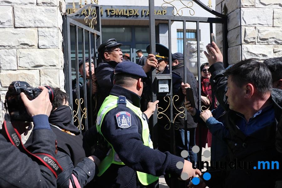 Жагсаалын үеэр АТГ-аас нэг ажилтан гарч ирж жагсагчидтай уулзахдаа "Х.Энхжаргал дарга ажил дээрээ ирээгүй байна" гэх тайлбарыг хийлээ. Тус ажилтан тайлбараа хийсний дараагаар хашаа руу буцаж орох гэтэл жагсагчид АТГ-ын хашаа руу хүч түрэн нэвтэрлээ. Улмаар цагдаа болон төрийн тусгай хамгаалалтын албан хаагчид иргэдийг холдуулан хаалгыг хааж жагсагчдыг хашаанаас гаргав.