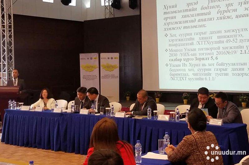 “Хот төлөвлөлт-Газар чөлөөлөлт-Хүний эрх” сэдэвт үндэсний Зөвлөлдөх уулзалтад Монгол Улсын Ерөнхий сайд У.Хүрэлсүх илгээлт ирүүлж, Монгол Улсын Засгийн газрын гишүүн, Барилга, хот байгуулалтын сайд Х.Баделхан, Нийслэлийн Засаг дарга бөгөөд Улаанбаатар хотын захирагч С.Амарсайхан нар нээж үг хэлэн оролцлоо. Уг арга хэмжээ "Хот, суурин газрыг дахин хөгжүүлэхтэй холбоотой бодлого, зохицуулалт", "Шударга нөхөх олговортой холбоотой зохицуулалт, хэрэгжилт", "Төсөл хэрэгжүүлэгч талуудын бодитоор зөвлөлдөх, иргэдийн оролцоо, газар чөлөөлөлттэй холбоотой анхаарах асуудал", "Төсөл хэрэгжүүлэгч талуудын хүний эрхийн сургалтын хэрэгцээ, шаардлага" зэрэг 4 хэсэг асуудлын хүрээнд төр, хувийн хэвшил, иргэн, хүний эрхийн байгууллагууд, иргэний нийгмийн байгууллагууд, хуульч, судлаач зэрэг олон талын байр суурийг сонсч, шийдвэрлэх гарц, арга замыг хэлэлцлээ. Хот, суурин газрыг дахин хөгжүүлэх харилцааг зохицуулж байгаа хууль, тогтоомжийн зөрчлийг арилгаж, уялдаа холбоог сайжруулах үүднээс орон байртай байх эрхийн хэрэгжилтэд дүн шинжилгээ хийж, цаашид авах арга хэмжээг тодорхойлох, Монгол Улсын Үндсэн хууль болон олон улсын хүний эрхийн хэм хэмжээ, зарчимд нийцүүлэн боловсронгуй болгох, шударга нөхөх олговрын хэмжээг тогтоож буй эрх зүйн зохицуулалтыг боловсронгуй болгох, ингэхдээ газар, өмчийн зах зээлийн үнээс гадна өмчийн эрх, эдийн бус ашиг сонирхлыг харгалзан үзэх нөхөх олговрын талаарх суурь харилцааг хуулиар нэг мөр тусгайлан зохицуулах; Хот төлөвлөлтийн нөлөөлөлд өртөж буй иргэд, болон нутгийн захиргааны байгууллагын хоорондын үл ойлголцох байдал, мэдээллийн агуулга, хэмжээний хэт зөрүүтэй байдлыг арилгах, иргэд, олон нийтийн бодитой оролцоог хангаж тухайн төслийн төлөвлөлт, үйл явц, хэрэгжилтийн талаарх мэдээллийн нэгдсэн сан бий болгож, иргэдэд мэдээлэл хайх, олж авах, хяналт тавих нөхцөл, боломжийг бүрдүүлэх; Төсөл хөтөлбөрүүдэд хяналт тавих, хариуцан хэрэгжүүлэх төрийн захиргааны төв болон нутгийн захиргааны байгууллагын ажилтан албан хаагчид, төсөл хэрэгжүүлэгч иргэн, хуулийн этгээдэд хүний эрхийн, хүн бүрийн орон байртай байх эрхийн суурь зарчим, хэм хэмжээний талаар тусгайлсан сургалт явуулах хэрэгцээ шаардлага байгаа юм.