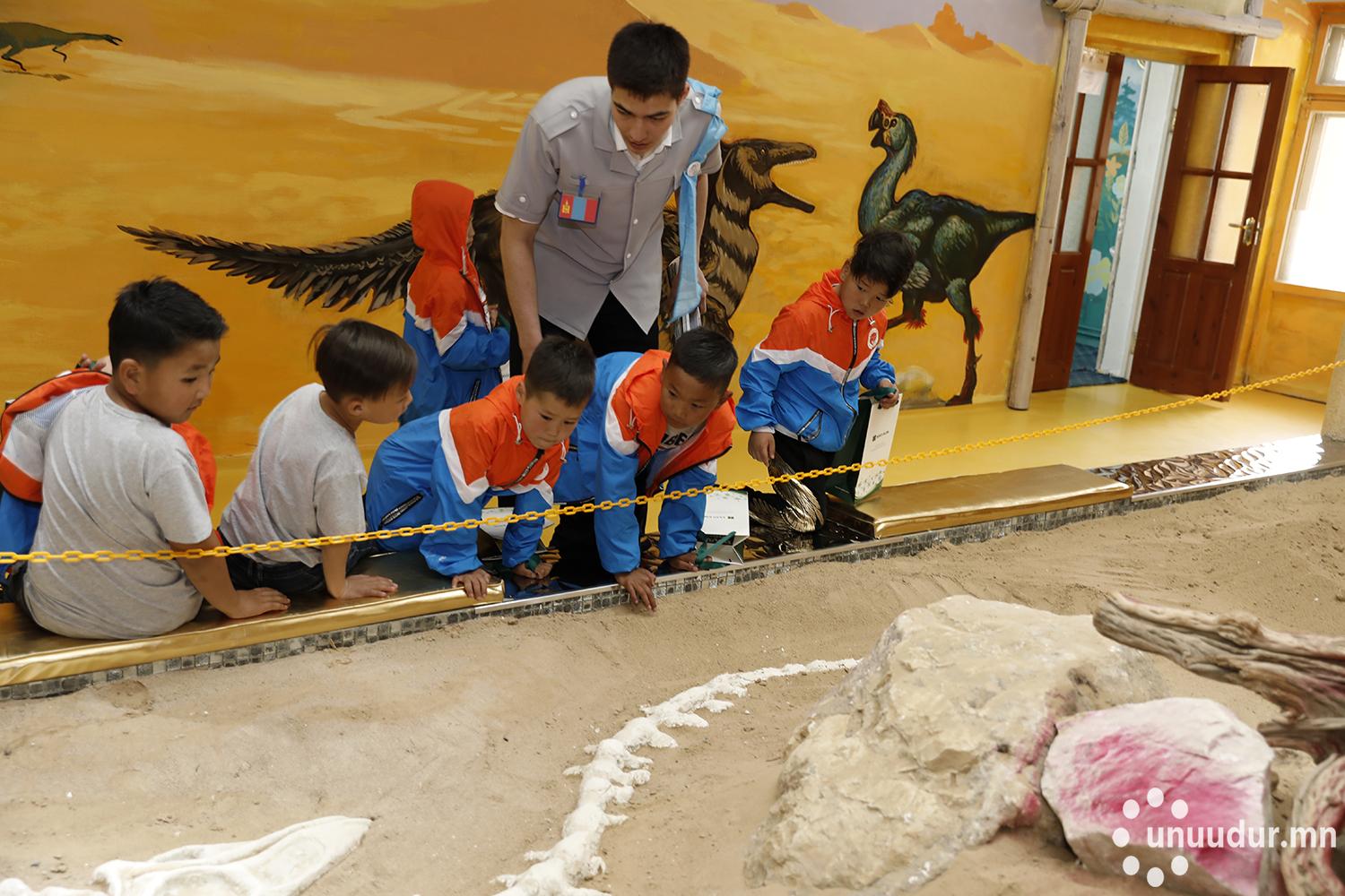 Нээлтийн ёслолын дараа бид “будаг нь ханхалсан” танхимуудаар зочилсон юм. Хангайн бүсийн танхимд ороход шувууд жиргэж байгаа нь сонсогдов. Хана, таазаа модоор “бүрхсэн” тул ойд яваа юм шиг санагдсан. Модны навч, мөчир, үндэс зэрэг нь ямар үүрэгтэй болохыг сургагч багш хүүхдүүдэд хичээнгүйлэн тайлбарлаж байлаа. Тус цогцолборт амрагч долоон настай Б.Гэгээнээ модны бүтэц, хэлбэрийн тухай маш их зүйл сурч мэдсэнээ надад “гайхуулав”. Харин говийн бүсийн танхимд хөвгүүд ханан хаданд авирах спортоор хичээллэж байсан нь анхаарал татахуйц. Тус танхимд бага насны хүүхдүүд айдсаа даван туулахад суралцахаас гадна үлэг гүрвэл, динозаврын талаар багагүй мэдээлэлтэй болох учиртай. Монгол орны нутаг дэвсгэрт 130-70 сая жилийн өмнө амьдарч байсан өндөг хулгайлдаг үлэг гүрвэлүүдийн зургийг тус танхимын хананд томоор зуржээ. Элс, говьд ургадаг модыг байгалиас нь авчирч өрөөний голд байрлуулсан төдийгүй үлэг гүрвэлийн ясыг сургагч багш нар дуурайлган хийсэн нь тэднийг ямар их хөдөлмөр зарцуулсныг илтгэнэ.
