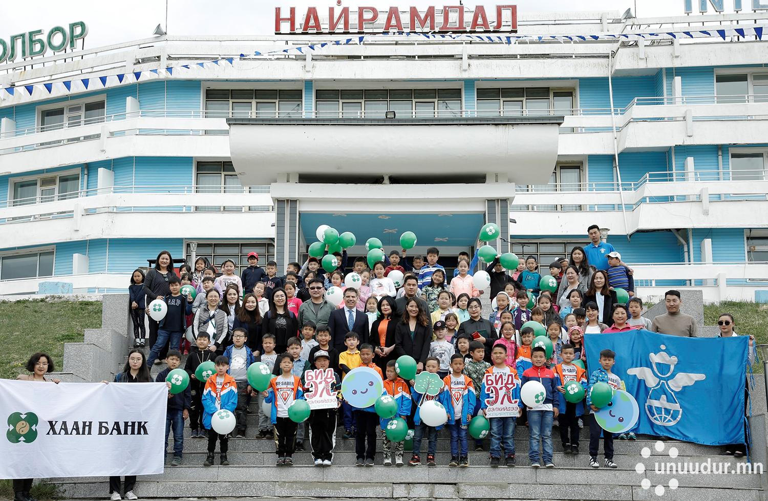 ХААН банкны тогтвортой хөгжил, нийгмийн хариуцлагыг хэрэгжүүлэгч ХААН Банк Сангаас байгаль орчныг хамгаалах, ногоон хөгжлийг дэмжих чиглэлээр шинэ санаачилга дэвшүүлсэн төслийг сонгон шалгаруулахаар өнгөрсөн оны сүүлчээр “Ногоон төсөл”-ийн уралдааныг аж ахуйн нэгж, байгууллагуудын дунд зарласан юм. Уг уралдааны тэргүүн байранд Олон улсын хүүхдийн “Найрамдал” цогцолборын санаачилсан “Би ногоон дэлхийн хүүхэд” төсөл шалгарч, зусланд амарсан хүүхэд бүр экологийн боловсрол эзэмших боломж бүрдсэн байна.
