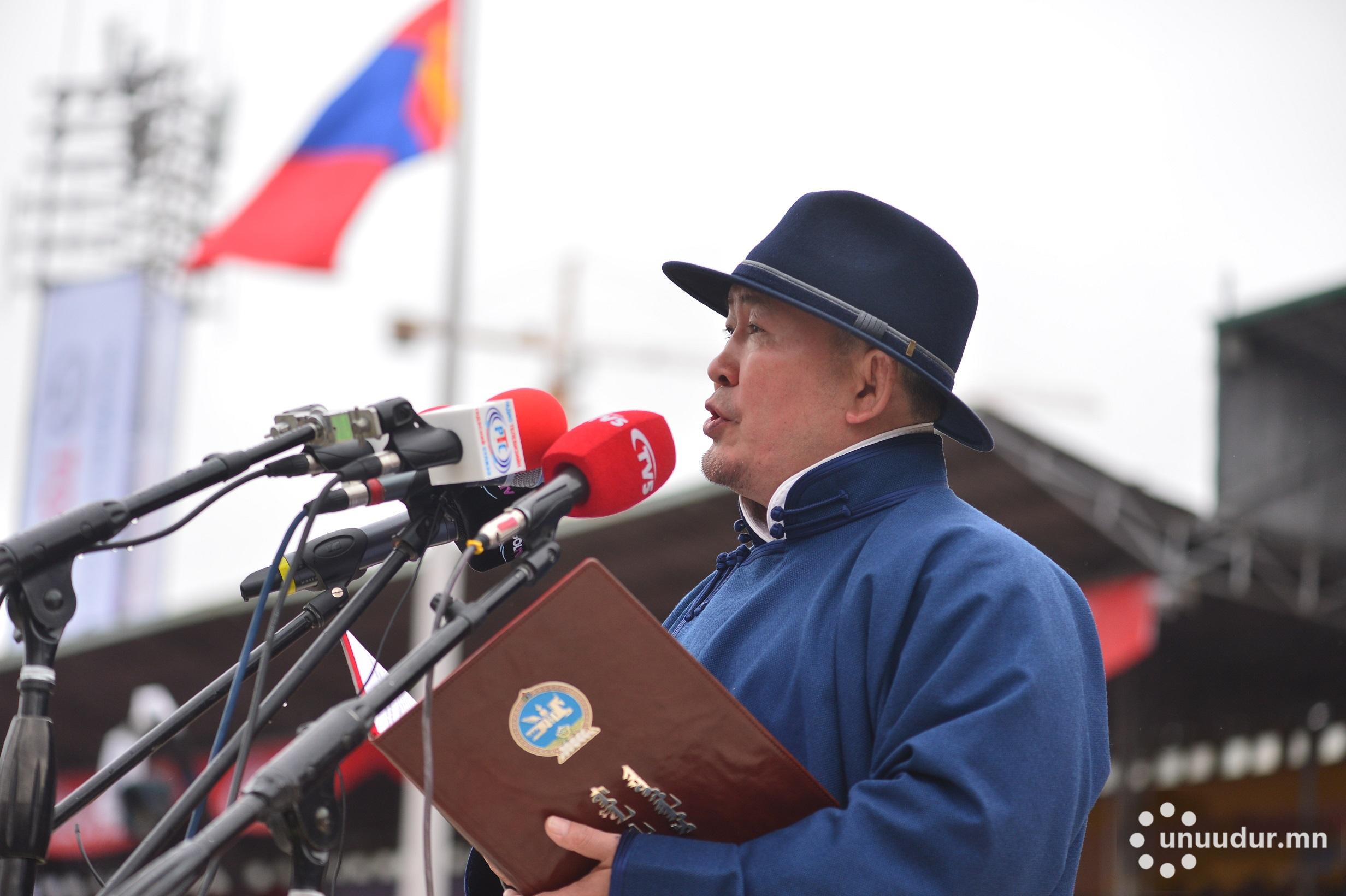 Төрт ёсны их баяр цэнгэл наадмаараа түүх соёлынхоо их улбааг тодотгон дэвжээж, хүчит бөхчүүд маань уран мэхийг уралдуулан, үнэн хүчийг үзэн барилдаж, эрдэмт уяачид маань ажнай монгол морьдоо уяж хурдлуулж, мэргэн харваачид маань эрхийн эрч, хараан цэцийг сорин, түмэн олноо баясган цэнгүүлсээр байх учиртай.