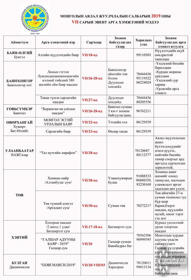 Монголын аялал, жуулчлалын салбарынхан 21 аймаг, нийслэл, дүүрэгт 2019 оны долдугаар сард зохиох арга хэмжээний хөтөлбөрөө танилцууллаа.